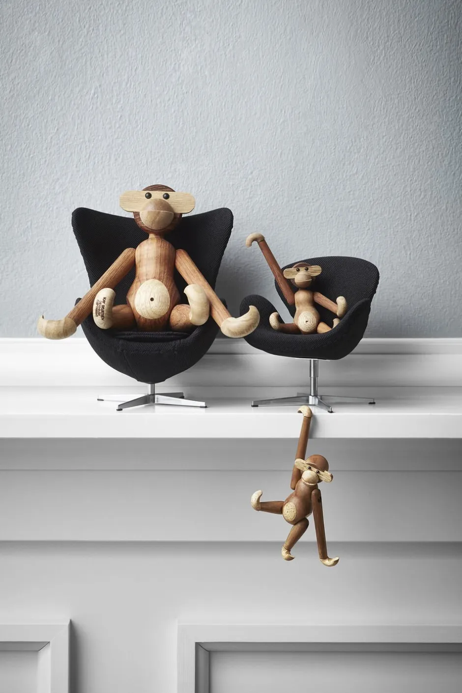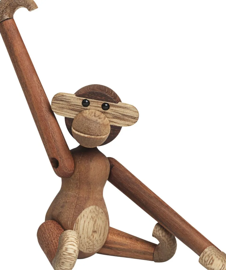 Kay Bojesen har udviet familien, og har nu tilføjet en en lillebror til den populære abe fra Kay Bojesen mini aben på 10 cm. Ligesom sine større brødre, plirrer Kay Bojesen mini abe i teak og limbatræ, nemlig med sine blanke sorte øjne, mens de lange arme svinger sig kækt, uanset hvor i boligen du placerer den.