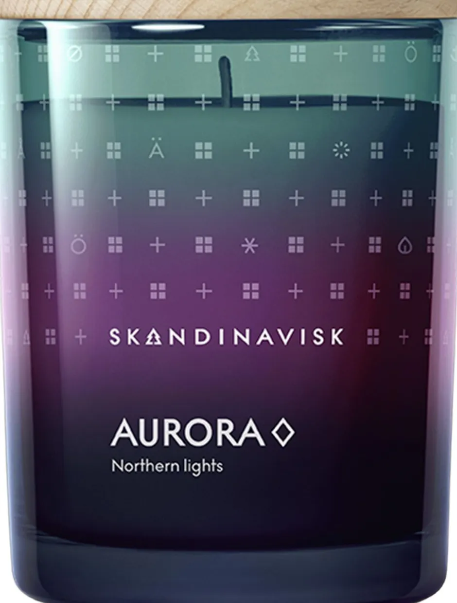 Duftnoter: Sandeltræ og enebær, jasmin og lime. Parfume og svensk rapsvoks blandet i malet glas med en væge af ren bomuld og låg af indgraveret bøgetræ. Emballage fra forvaltede nordiske skove med vandbaserede farvestoffer. 200 g. Op til 50 timer. Magisk, undvigende, udefinerbar. Nordlysene er et af naturens syv vidundere, en symfoni af farver, bevægelse og dimension, som gamle nordiske krønikeskrivere engang troede var soludbrud, store havbrande eller glacialt fluorescerende lys.