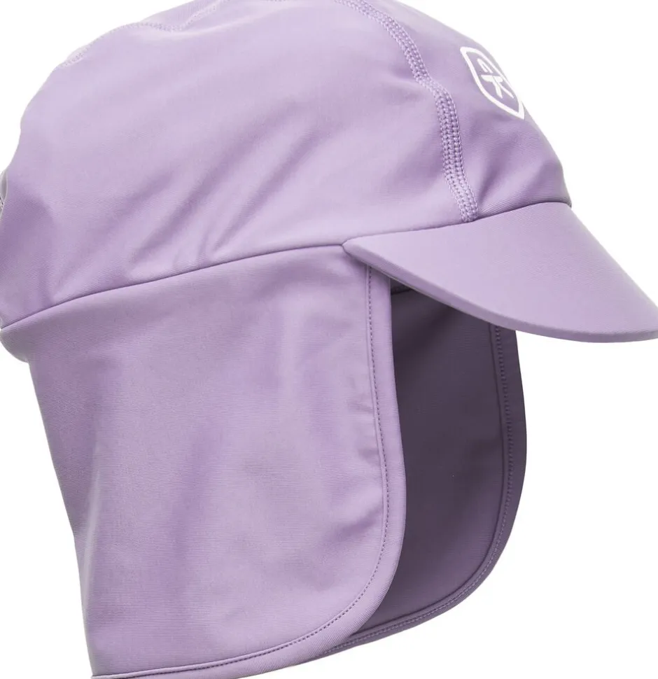 Solhat med kasketskygge foran og skygge, der beskytter nakken mod solen. Ensfarvet og høj solbeskyttelse. Color Kids-logo foran.