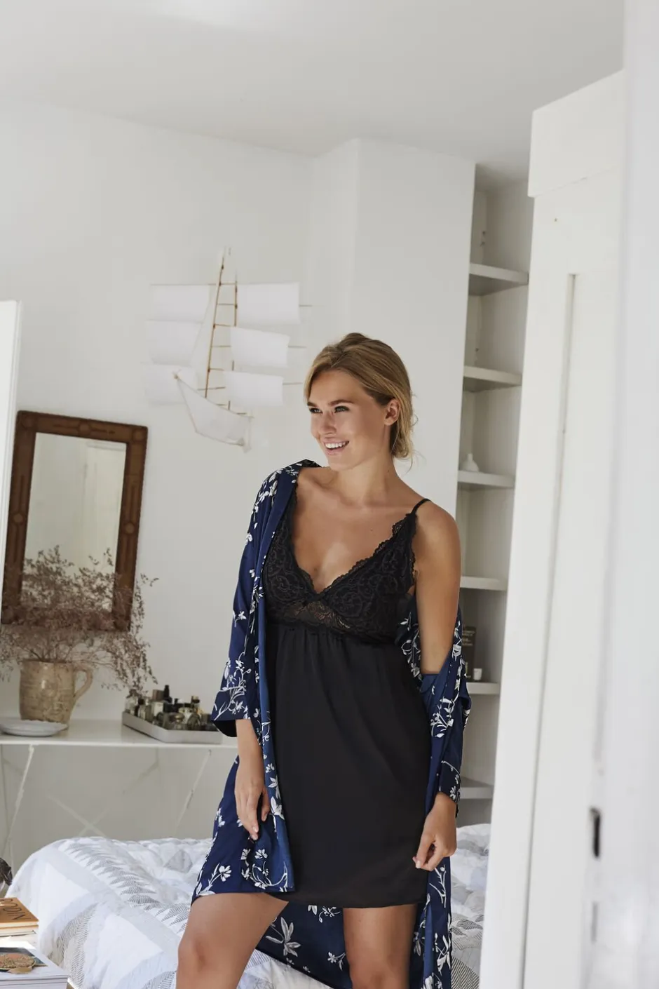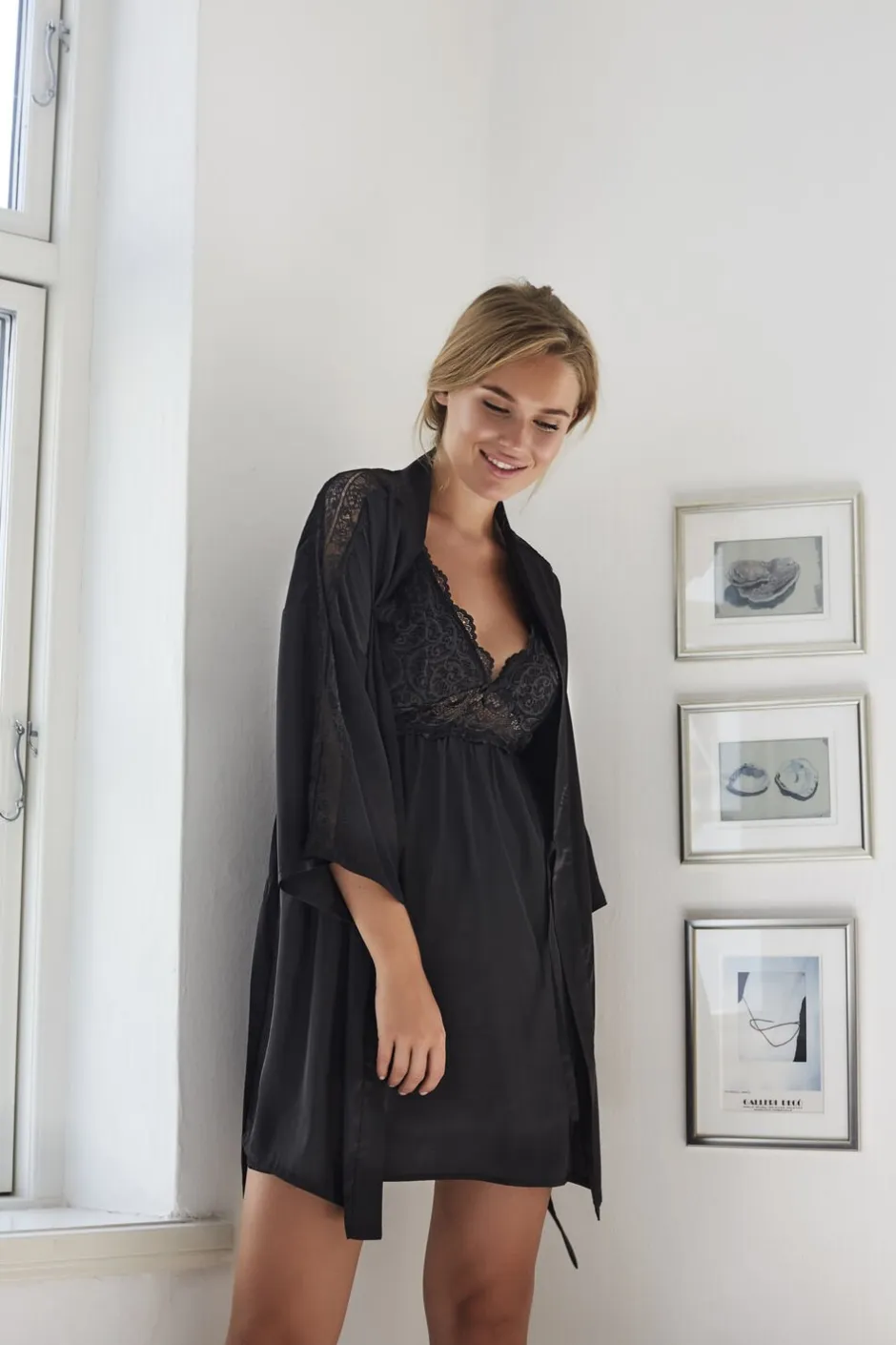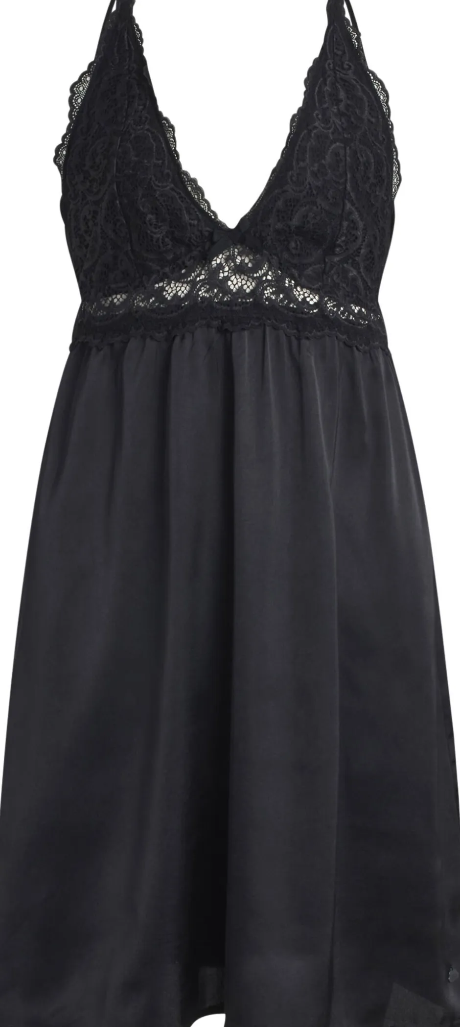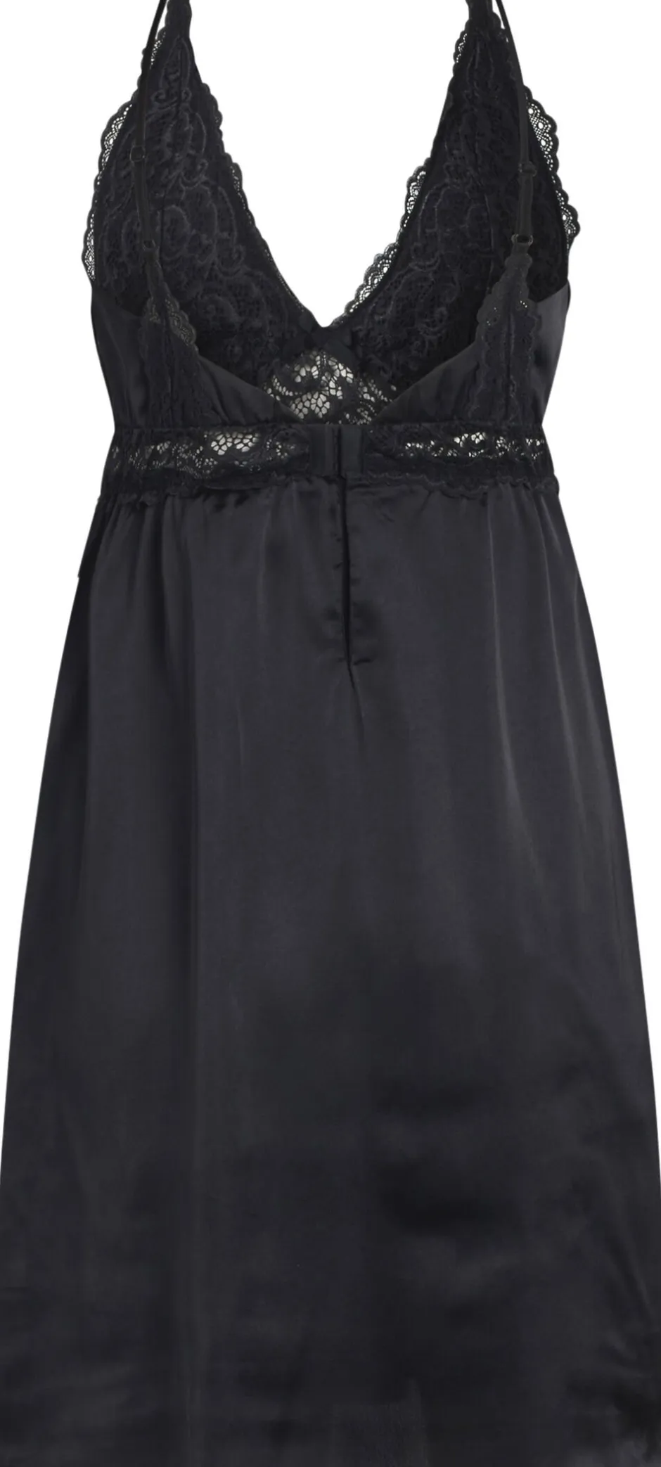 Feminin chemisekjole med justerbare stropper og en smuk blonde på den let forede barm. Satinkvaliteten smyger sig på kroppen – du vil elske din nye natkjole fra CCDK.
