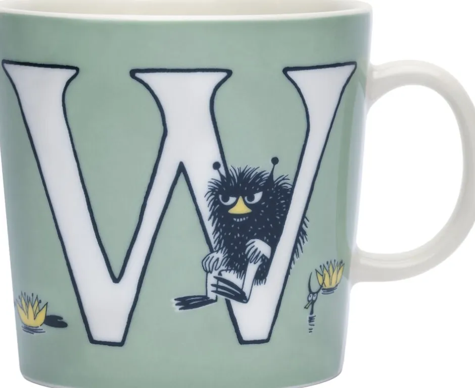 På W-kruset er Mumidalen blevet til en jungle, og Stinky har sluppet dyrene fra zoologisk have fri. Men Stinky har altid en bagtanke. Han lokker Snorkfrøken og Mumitrolden tilat komme ogse kæmpe liljer men i stedet er det en kæmpe slange. Moomin Arabia krus 40 cl, ABC W