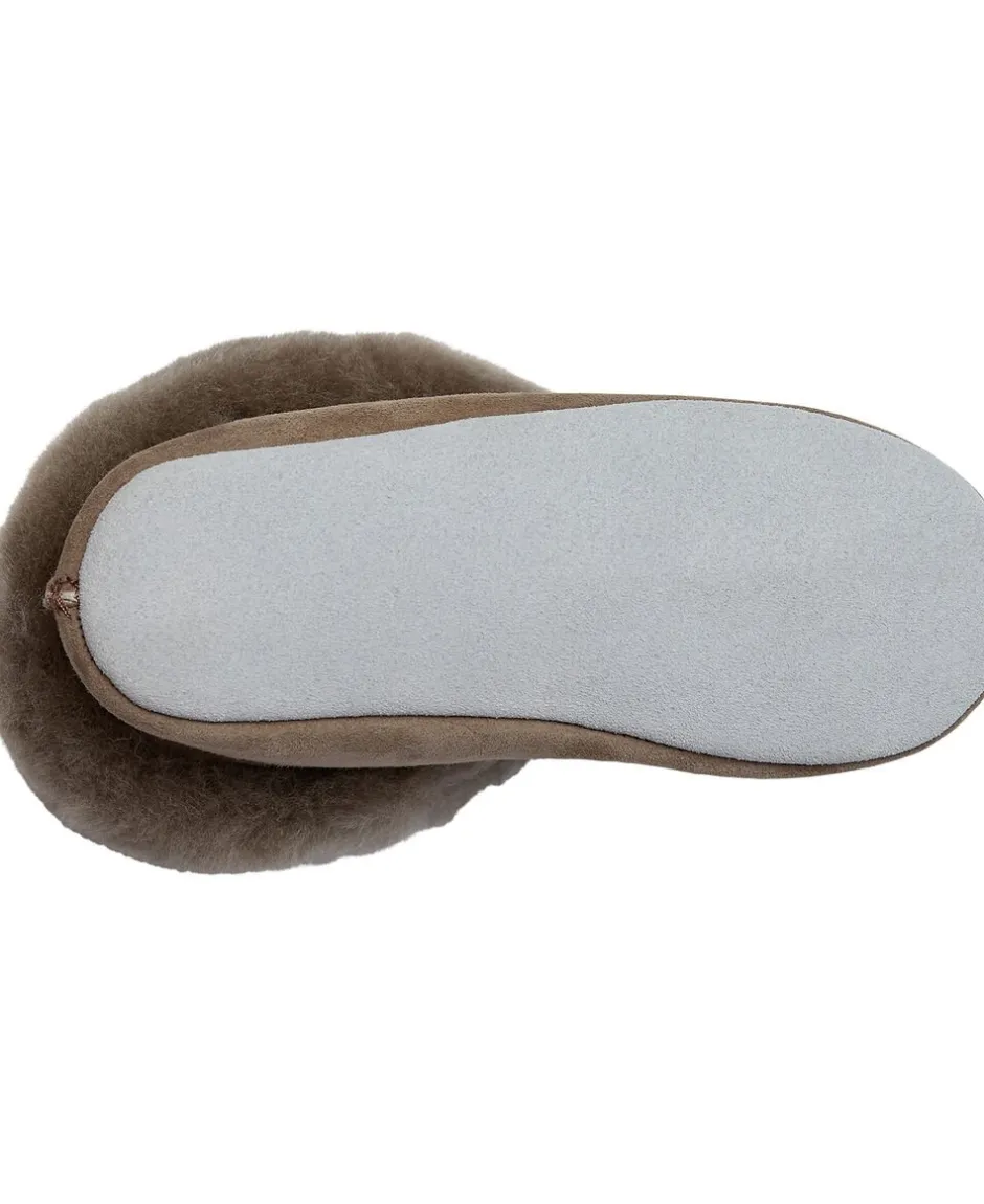 Shepherd Osby et par bløde og varmende børnesutsko i fåreskind. Sutskoene er udformet i en ankelmodel med en bred foldet kant i fåreskind og et dekorativt kantbånd i tekstil foran. Blød sål i ruskind.