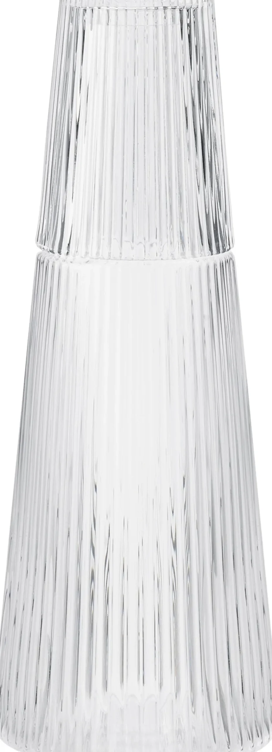 Pilastro-serien er designet af Francis Cayouette med inspiration fra 1920ernes elegante og funktionelle Art deco-stil, der dengang dominerede indenfor arkitektur og design. Serien består i forvejen af riflede drikkeglas, serveringsskåle samt en vinkøler. Pilastro karaflen med tilhørende glas har samme sofistikerede udtryk, rene formsprog og rillede overflade som de eksisterende produkter i serien. Karaflen indeholder 1 l, og til karaflen hører et mindre glas 15 cl, der også fungerer som låg – et perfekt sæt til skrivebordet og til natbordet. Sammen med resten af produkterne i serien, er karaflen med glas et smukt sæt til både dagligdag og til fest, hvor Pilastro karaflen forskønner serveringen af vand eller vin. Ligesom de eksisterende Pilastro drikkeglas, tåler karaflen både varme og kolde drikke.