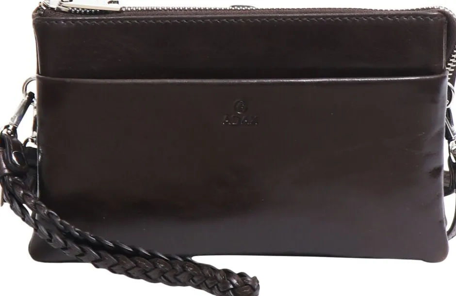 Adax kombi clutch i Salerno kalveskind. Clutchen har flere gode rum og plads til mange kort. Fantastisk rummelig model. Den er opdelt i midten af et rum der lukke med lynlås – kan evt. bruges til mønterne. Clutchen lukkes med en lynlås. Den aftagelige håndledsrem kan evt. bruges til nøgler. Vi anbefaler at Cormorano skindet plejes med Adax læder balsam. 20x12x3 cm