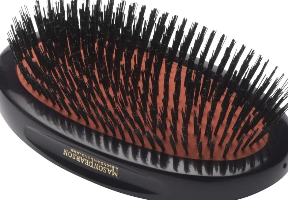 Mason Pearson SB2M er en medium størrelsen i sortimentet og er lavet udelukkende af rene vildsvinehår. Mason Pearson børsten i ren vildsvinhår anbefales til fint hår ogSB2M er fremstillet specielt til beskyttelse af sart hovedbund med tendens til hårtab. SB2M er specifikt designet som en herrebørste, Military style betyder at børsten ikke har et håndtag og er generelt kraftigere og mere maskulin i sit udtryk. En Mason Pearson børste masserer og stimulerer hovedbunden, hvorved hårbundens naturlige olier bliver frigivet. Ved gennembørstning bliver olien fordelt ud i længden af håret, så håret får en naturlig glans, samt fylde i bunden. Mason Pearson anbefaler 100 strøg om dagen – en investering i et godt hår hele livet!
