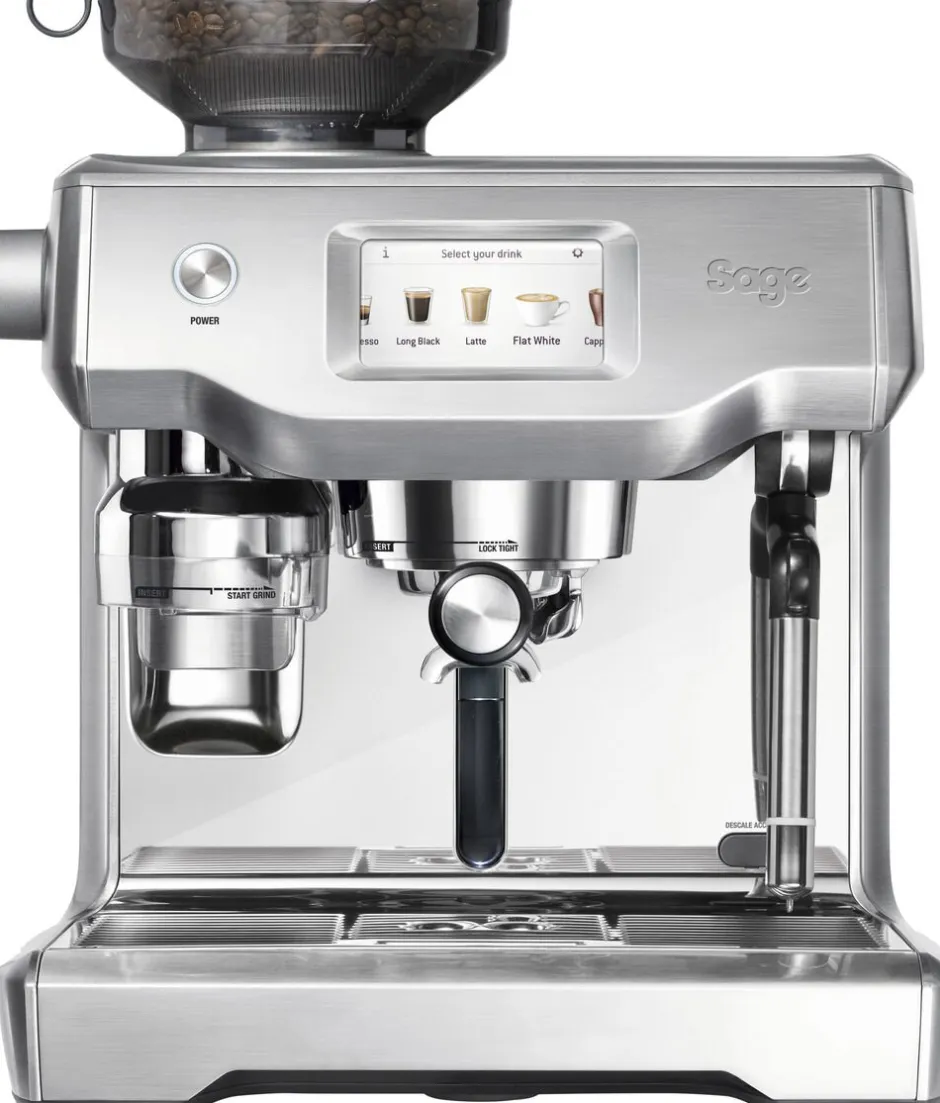 Sage The Oracle Touch espressomaskine, er det nyeste skud på stammen af eksklusive automatiske kaffebryggere i rustfrit stål fra det eksklusive brand Sage. Sage Oracle Touch laver nemlig perfekt kaffe i ægte café kvalitet, hjemme hos dig selv. Sage Oracle Touch er utrolig intuitiv og nem at betjene, takket være touch skærmen, hvilket gør den til et sandt orakel.