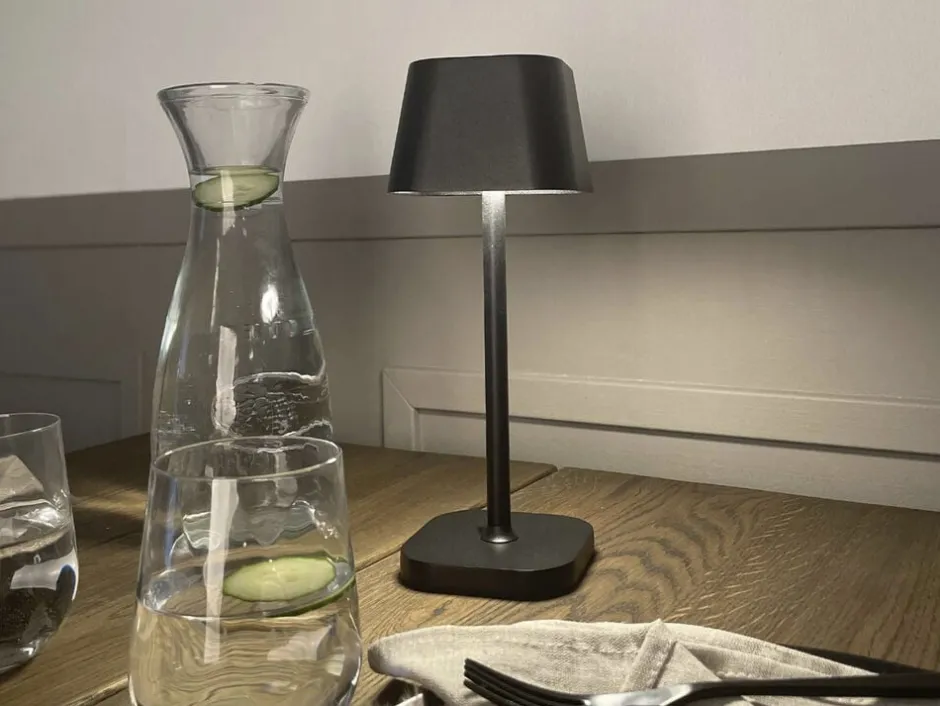 Den minimalistiske Isa lampe er udført i sort aluminum. Den elegante LED-lampe kan tændes ved hjælp af sin touch-funktion, og lampen har et USB-stik.