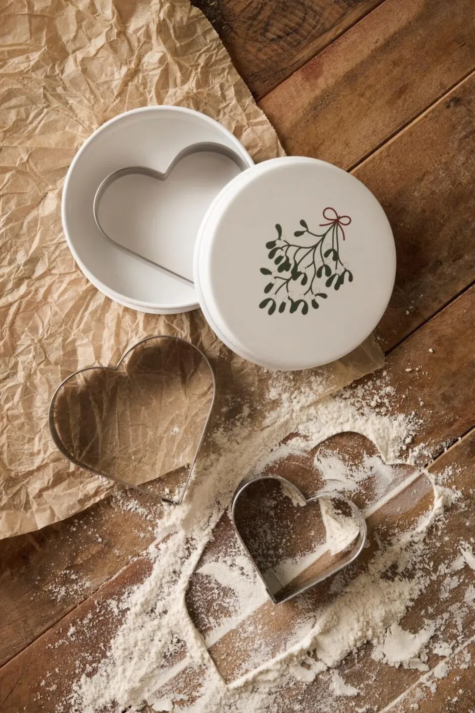 Ib Laursen Bageartikler|Julebag>Dåse m/3 hjerte-kageudstikkere, mistelten