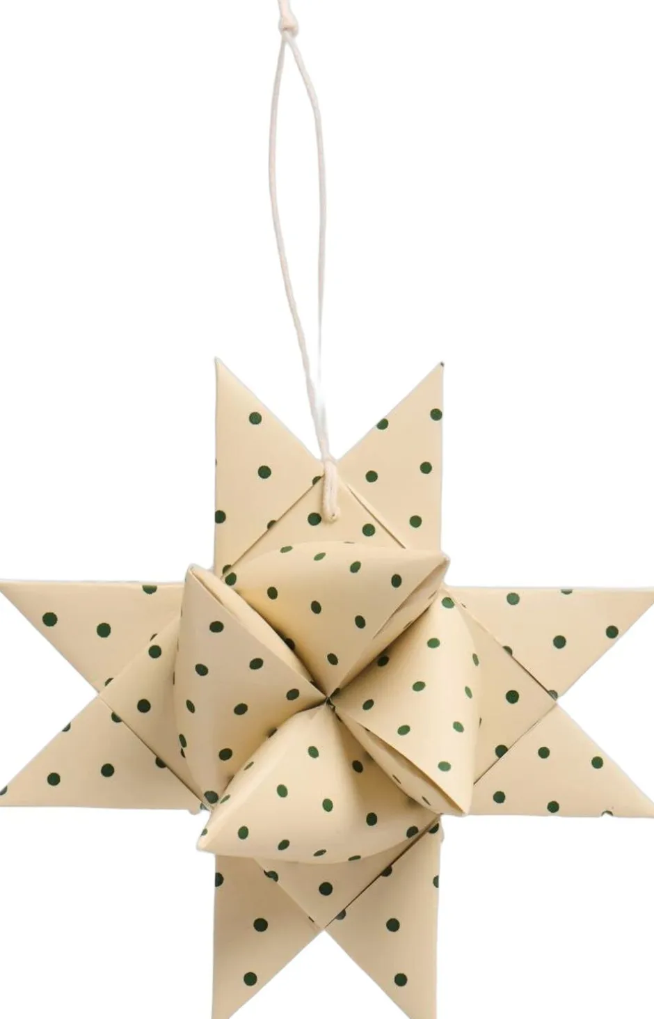 Ib Laursen Juletræspynt>Flettet stjerne t/ophæng lille m/grønne prikker