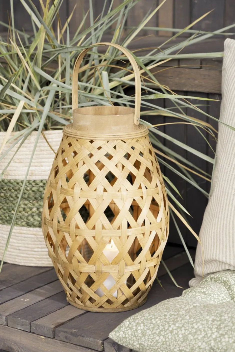 Ib Laursen Lanterner>Lygte m/glasindsats og hank krydsflettet bambus