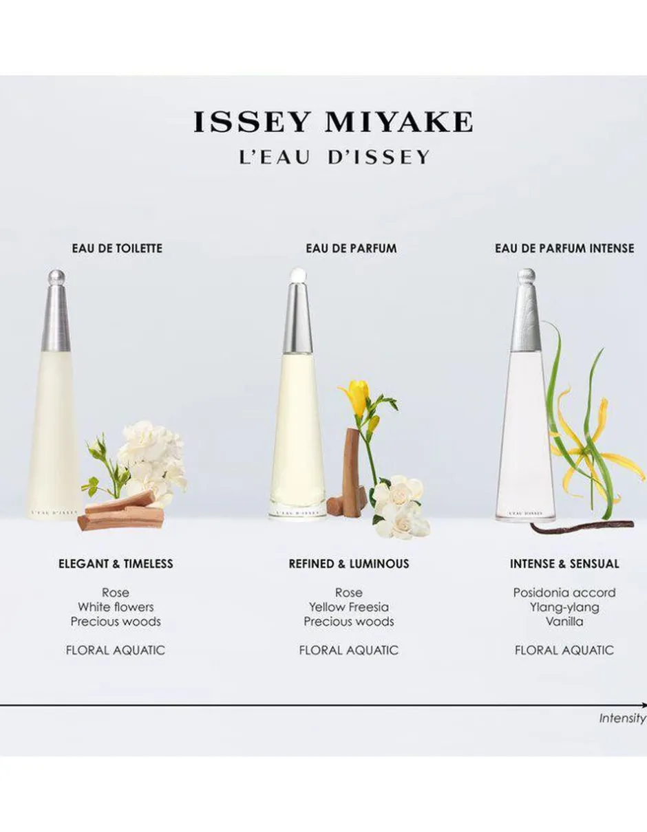 L’Eau d’Issey Eau de Parfum Intense er en feminin og powerfuld duft, som er inspireret af havets mystik og styrke. Blomster- og marine noter, som er perfekt balanceret, skaber en unik og dynamisk oplevelse. Duften åbner friskt og grønt med en Posidonia-akkord, der er inspireret af de undersøiske enge, der fungerer som havets lunger. Denne unikke akkord er skabt af den anerkendte parfumør Amandine Clerc-Marie og intensiverer duftens karakteristiske blomstrende og akvatiske signatur. Ylang-ylang tilfører hjertet en strålende, blomstrende intensitit, mens vanilje tilfører et rigt og sensuelt strejf, der bliver hængende. Denne Issey Miyake duft er skabt til den moderne og selvsikre kvinde, som er inspireret af naturens kraft.
