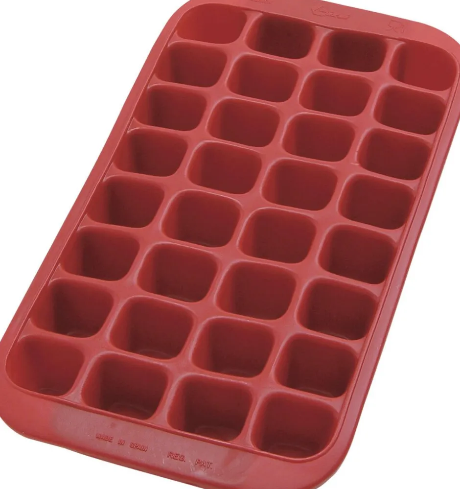 32-kubet isterningebakke lavet af fleksibel gummi med låg. Ingen lugte takket være låget. Nemt at få ud.