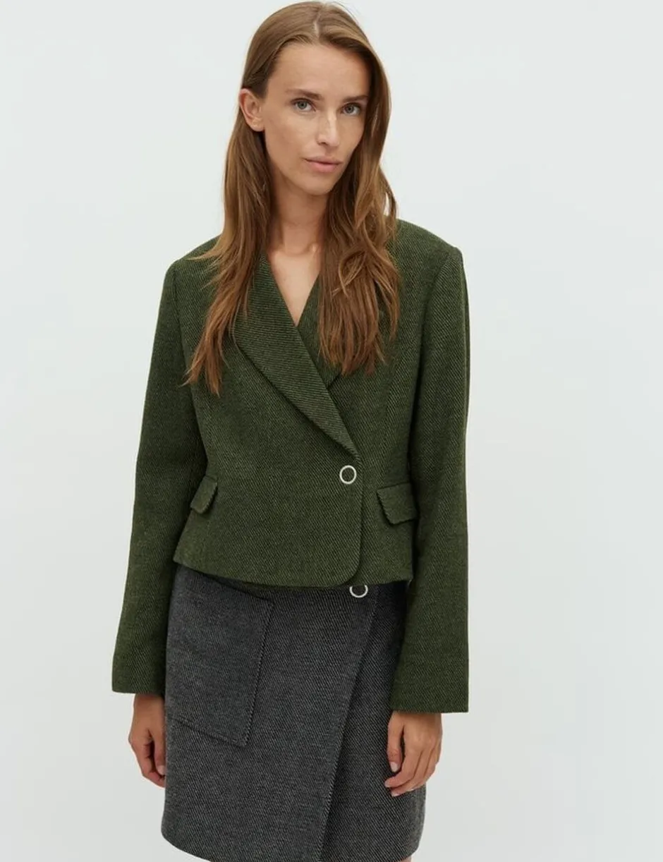 – Detaljer med finesse: Den diskrete knapdetalje tilføjer et unikt præg, der skiller sig ud og gør blazeren til et statement-piece.