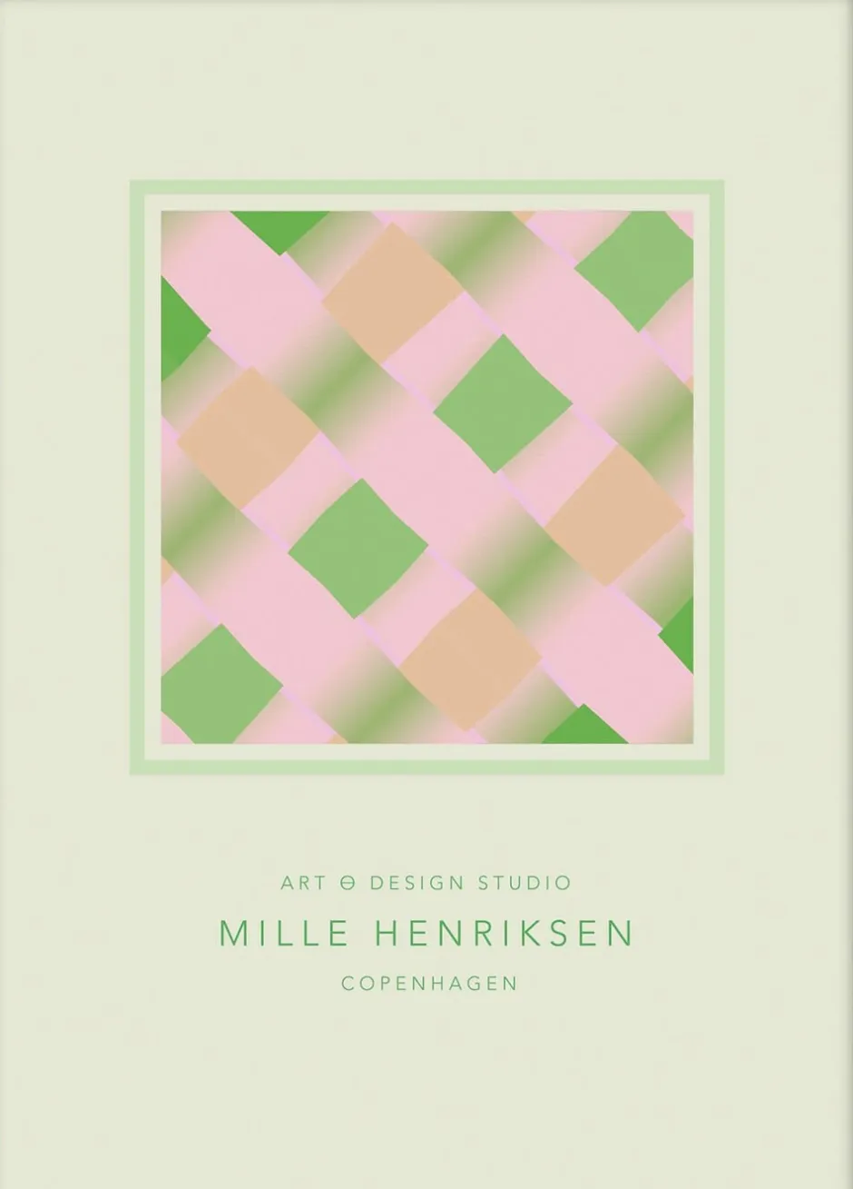 Københavns baserede grafiske designer og kunstner. Jeg nyder at eksperimentere med former, farver og teksturer, og min udtryksmåde ligger i de forskellige områder mellem det enkle og det flerlagede.Derfor finder du en stor variation i mit arbejde, der omfatter trykte samlinger, malerier og unikke genstande.”” – Mille Henriksen *Bemærk at rammer sælges separat.