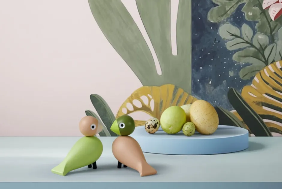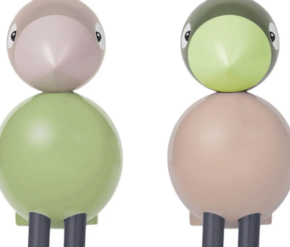 Fugle mødes og sød musik opstår. Serien af sangfugle og turtelduer er elskede klassikere i dansk design og evige symboler på tidløs kærlighed. Og med dette både moderne og klassiske turtelduepar får du to unikke fugle i det ikoniske Kay Bojesen-formsprog, der med deres harmoniske farver og charmerende udtryk omfavner ansvarlighed og folder vingerne ud med masser af liv og sjæl og lander lige i hjertet hos både store og små. Den ene turteldue har lysegrøn fjerpragt, rosa næb, sandfarvet hoved og lyseblå ben, mens den anden prydes af en rosa fjerpragt, lysegrønt næb, grønt hoved og sandfarvede ben stort set samme farvepalet for begge turtelduer. Begge turtelduer måler 9 cm i højden og er fremstillet med stor præcision i FSC®-certificeret bøgetræ, der garanterer, at træet til produktionen er plantet, dyrket og fældet ansvarligt. De farvede turtelduer er inspireret af tidens farvetrends og emmer af et ægte vidnesbyrd om kærligheden til originalt dansk design og fascinationen af de klassiske træfigurers skønhed. Samtidig markerer de en unik samhørighed, et samlende fællesskab i en nogle gange lidt for fragmenteret verden. Fuglene ved du, hvor du har. Og de har hinanden. Med simple grafiske virkemidler er de ikoniske sangfugle i årevis blevet bragt til live i et væld af farver alle i Kay Bojesens helstøbte design med det velbalancerede udtryk, der fremstår indbydende, roligt og rart. Nyd dem derhjemme, sammen eller hver for sig. Eller giv den ene eller dem begge til en, du har kær. Uanset hvordan du udfolder Kay Bojesens originale fortællinger i træ, så har turtelduerne en helt særlig appel til både børn og voksne og er en god gaveide til dåb, fødselsdag, studentergave, jubilæum eller bryllup. En klassiker, der flyver med dig gennem hele livet lige fra børneværelset til at blive et elsket designikon i egen bolig.