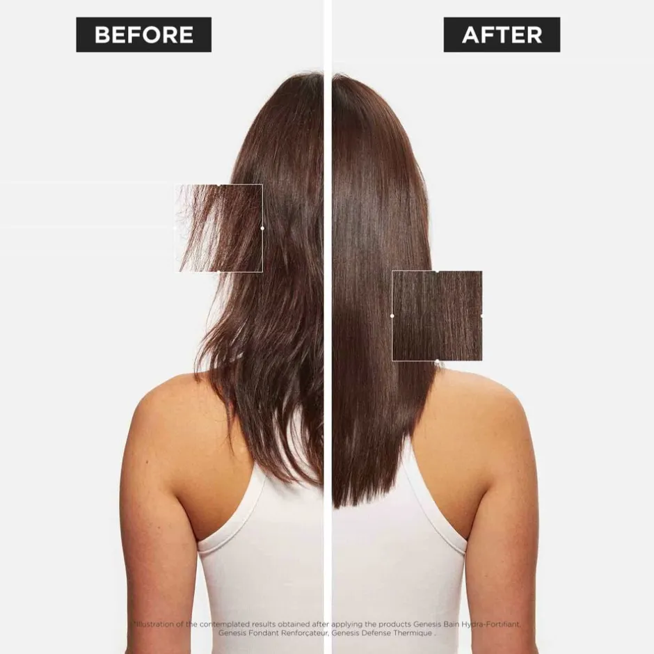 - Den mælkeagtige formel beskytter hårstråene mod at knække og sikrer optimal fugt uden at kruse eller tynge håret ned.