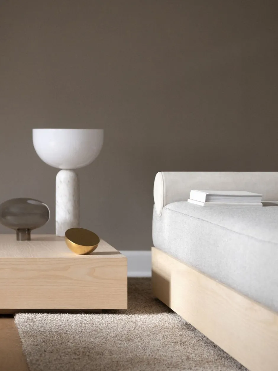 Komponeret af to stærke skulpturelle former, demonstrerer Kizu Bordlampen en vægtløs balanceakt. Illusionen af tyngdekraft skaber en spænding i designet, mens dens buede former giver en beroligende effekt. Dette kyssepunkt mellem materiale og funktion skaber et objekt i perfekt harmoni.