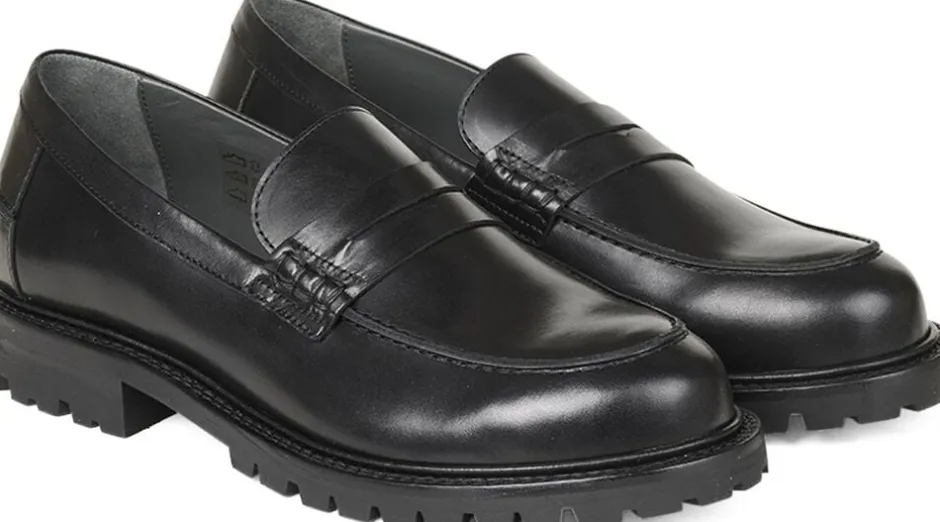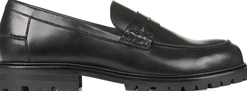 Klassisk Penny loafer i skind med sort tracksål.