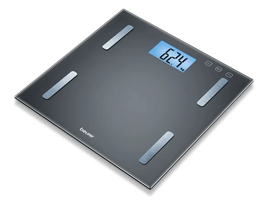 Vægten har plads til 10 brugere. Med et XL LCD-display og blåt baggrundsbelyst display med en cifferhøjde på 34 mm. Vægten er ultratynd, den måler kun 19 mm i højden. Vejefladen er udført i sikkerhedsglas og måler 30×30 cm. Elektroderne er udført i børstet rustfrit stål. Vægten kan veje op til 180 kg og vejer med 100 g interval. 5 års garanti