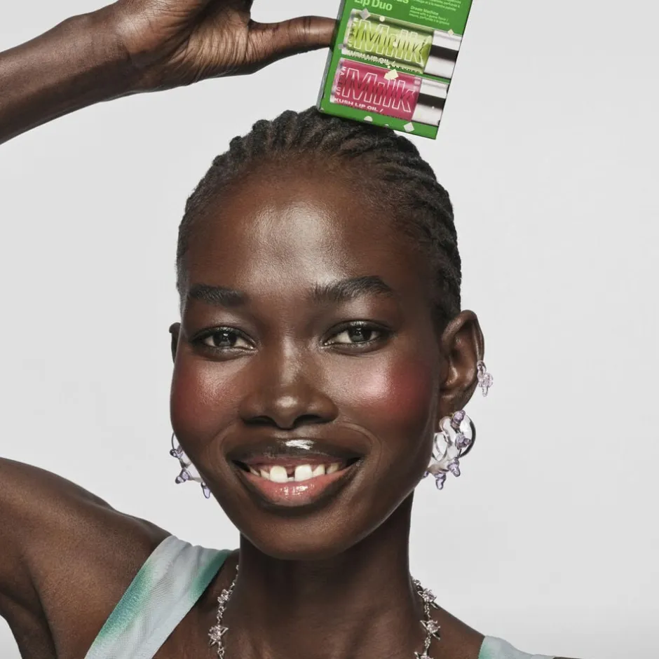 Et skønhedssæt, der indeholder to transparente, ikke-klæbende læbeolier, som giver optimal fugt og glans og giver glattere og fyldigere læber.