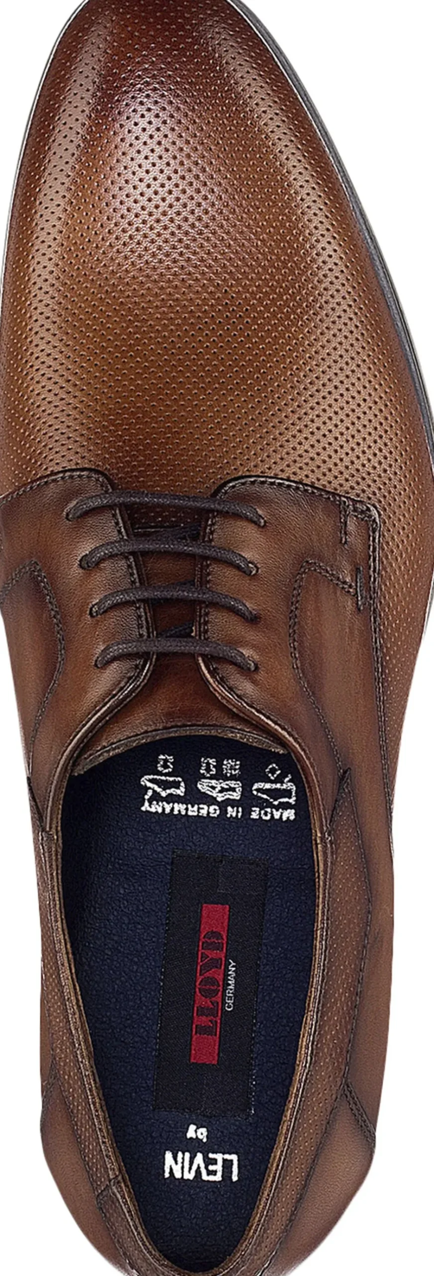 LLOYD “LEVIN” Derby-skoene, der er fremstillet af sort læder, imponerer med deres moderigtige stil. En elastisk gummisål og snørebånd er også standard