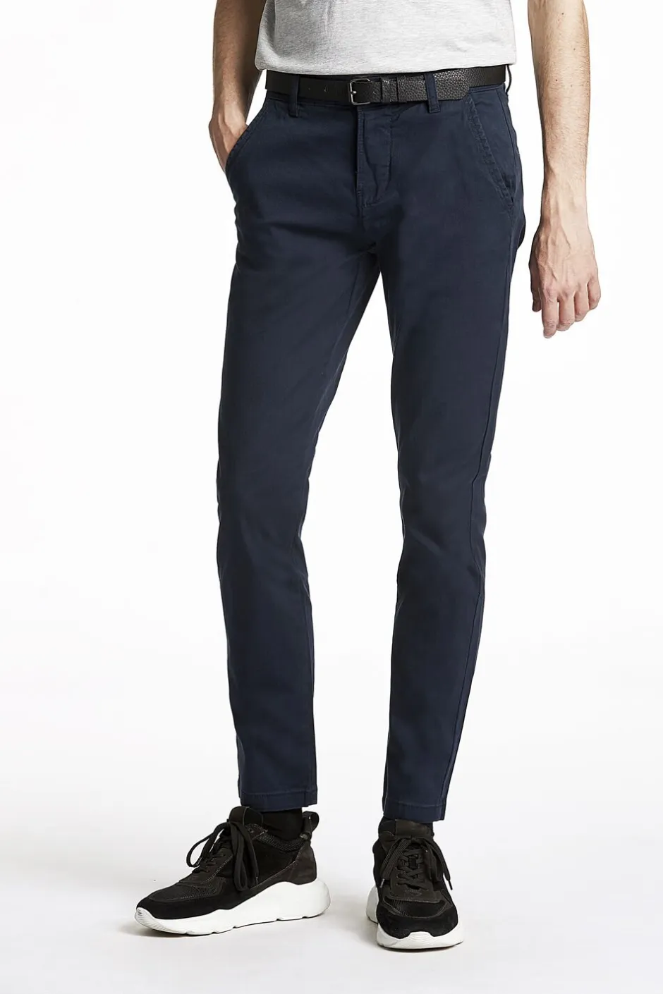 Chino fra Lindbergh. Der følger et bælte med bukserne. Bukserne er med strech.