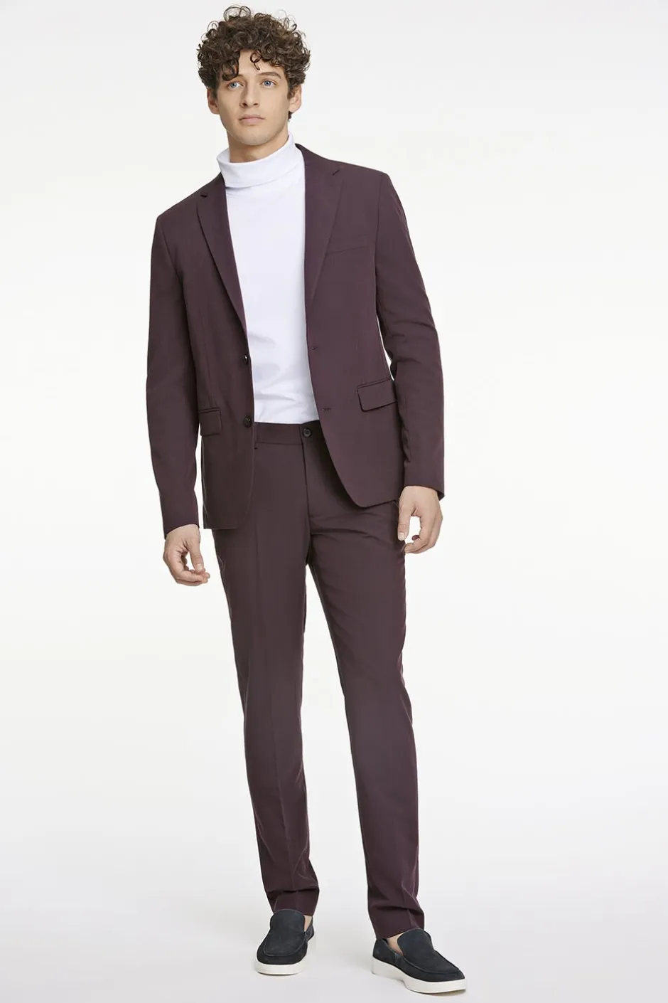 Bukserne er klassiske habitbukser, som lukkes med knap og skjult lynlås. Der er pressefolder, som gør looket ekstra stilfuldt, og bukserne har lommer i siden og paspolerede baglommer med knapper.