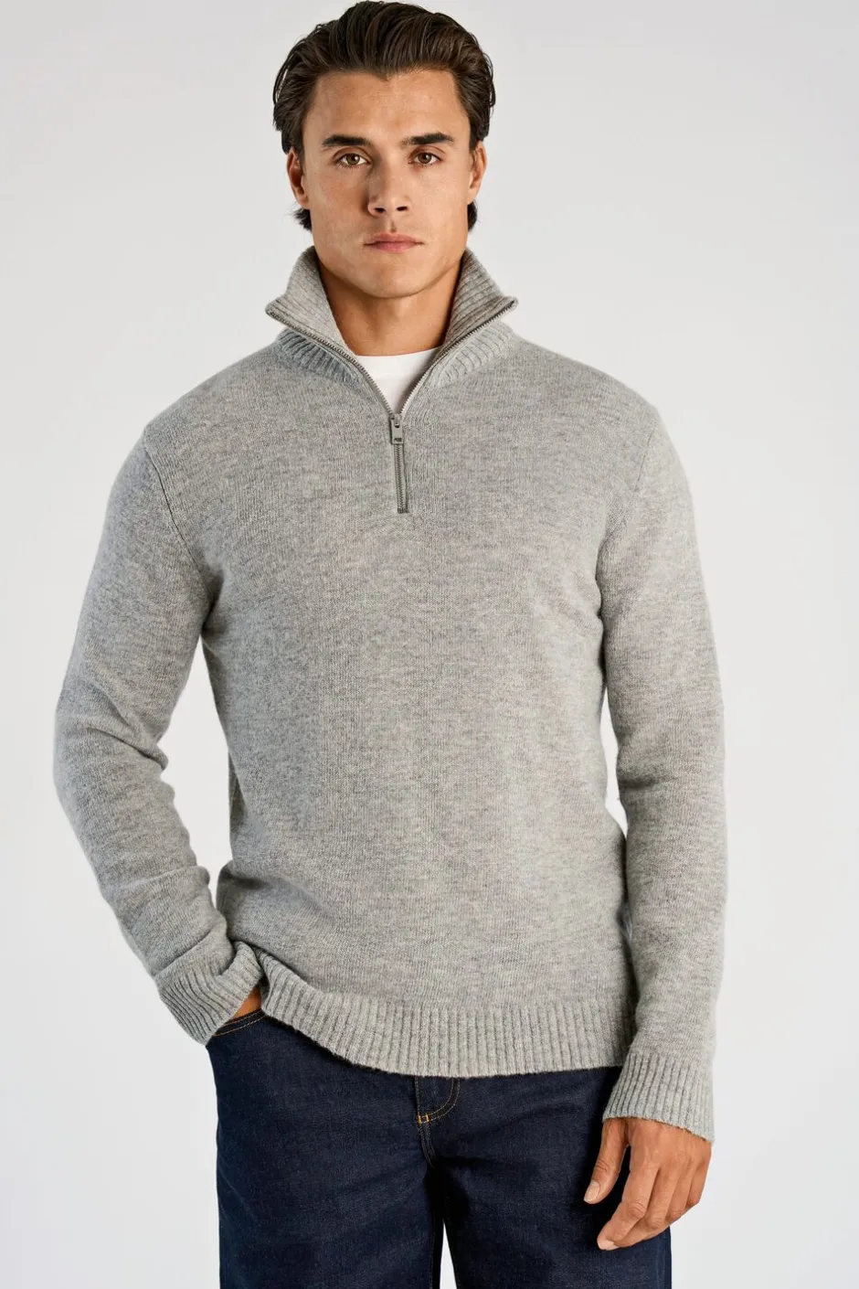 Moderne striktrøje lavet med 80% lammeuld, som gør den varm og blød og samtidig er både åndbart og isolerende. Ensfarvet og med ribstrik nederst på trøjen samt på ærmerne og på kraven. Lavet i relaxed fit, som er tætsiddende uden at være stram.