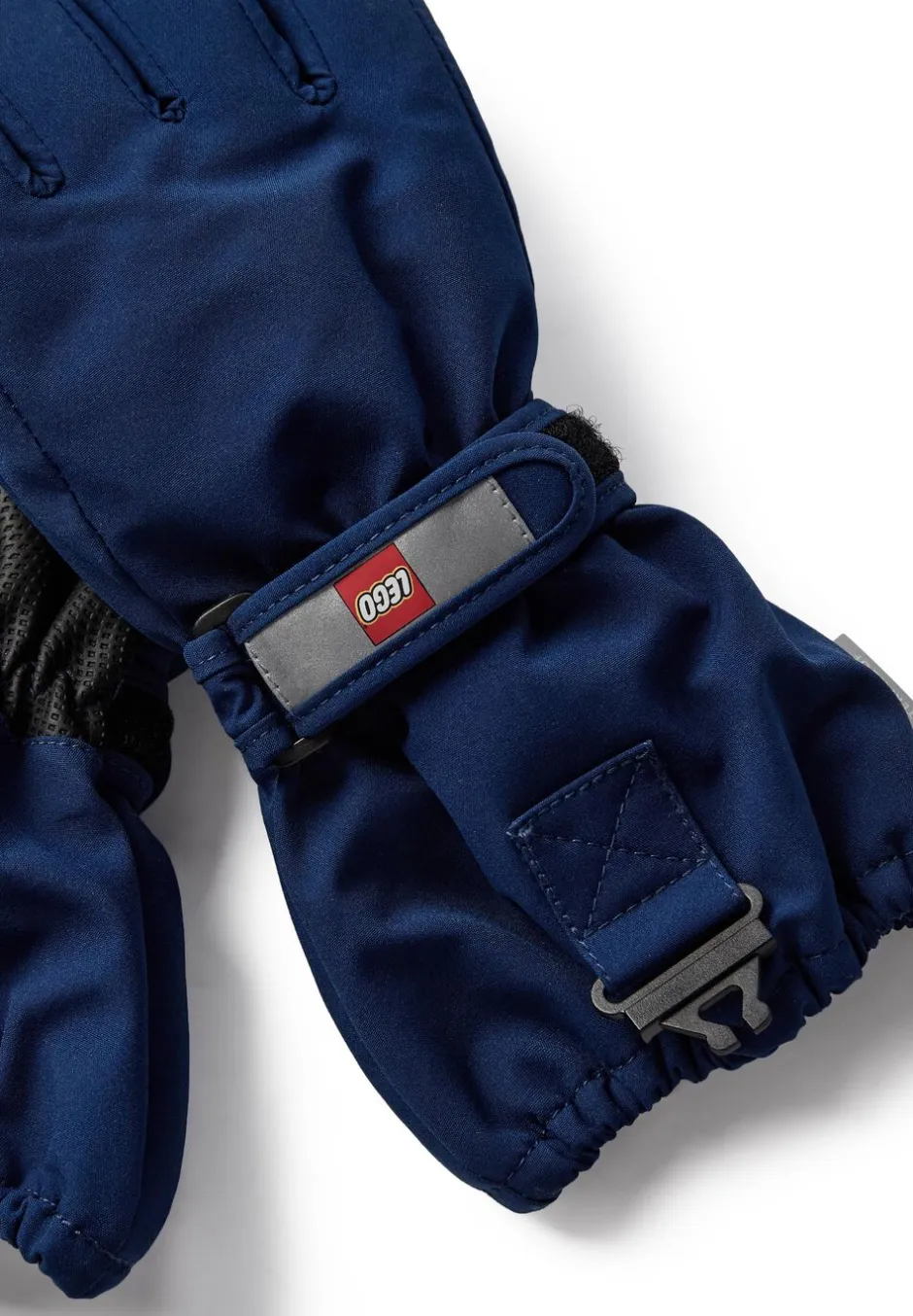 - I størrelserne 98/104-134/140 er der et sikkerhedsspænde til at klikke vanten fast på ærmet af LEGO flyverdragter og skijakker