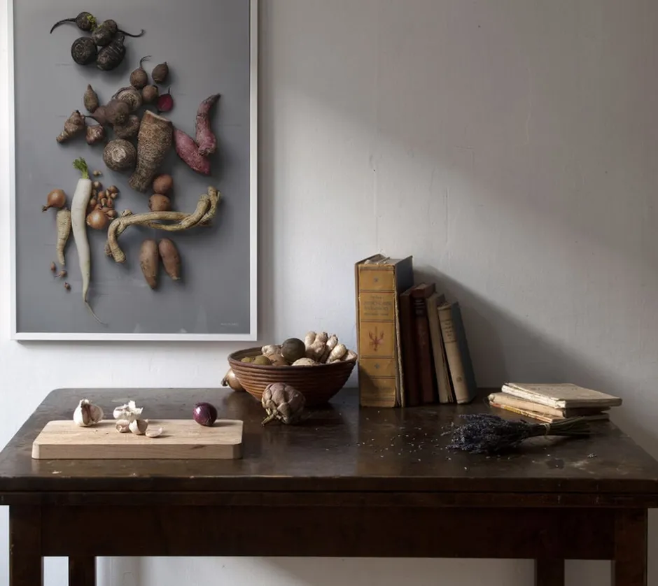 MAD/PLAKAT er fotografiske eller grafiske billeder af forskellige rÂvarer, oftest ¯kologiske eller biodynamisk dyrket. Motiverne er Plancher med navne p frugt og gr¯nt, Stilleben opsÊtninger, eller et bredt udvalgte af enkelt vÊkst-motiver fra planteriget. Vi lÊgger vÊgt p at lade vÊksterne st naturligt frem, vise dem som de er i deres naturlige uperfekthed og derved fremhÊve naturens eget viltre udtryk. Til daglig benytter vi os af naturens goder til at br¯df¯de os selv og vores nÊrmeste, men hvor ofte stopper vi op og ser p unikheden i de vÊkster som er vores nÊring. Alle planter har vÊret liv i sig, alle kommer af en vÊkst som er vokset frem af vores fÊlles jord. Med plakatmotiverne fra MAD/PLAKAT tydeligg¯r vi madens udspring i planteverdenen og derved forbundenhed med hele klodens natur.