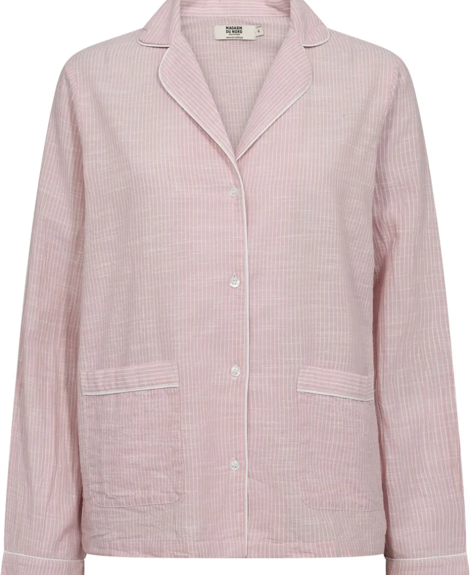 Skjorte fra Magasin du Nord Collection i en blød og lækker 100% bomuldskvalitet med smalle striber. Skjorten har en løs pasform med lange ærmer, knaplukning på fronten, to frontlommer og dekorative pipingbånd. Kombiner den fx med en underdel fra Magasin du Nord Collection for et komfortabelt og luksuriøst natsæt.