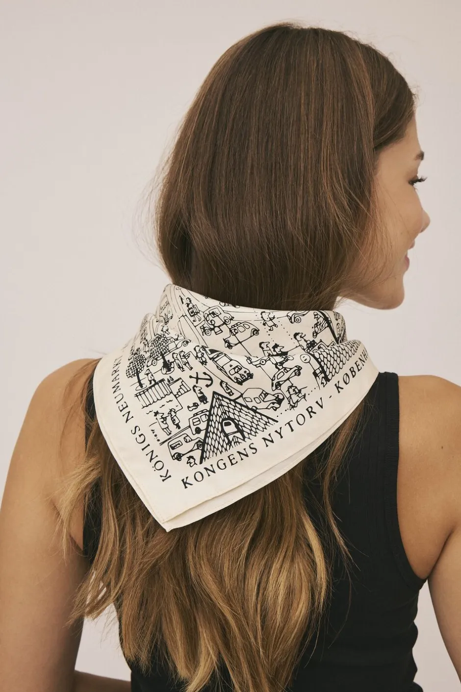 Tørklæde fra Magasin du Nord Collection i den smukkeste kvalitet af 100% fin silke med et ikonisk print af Kongen Nytorv i København. Derudover er tørklædet enkelt i modellen med en klassisk, kvadratisk facon samt fine kanter. Et rigtig flot tørklæde af den bedste kvalitet. Fås i flere størrelser og farver.