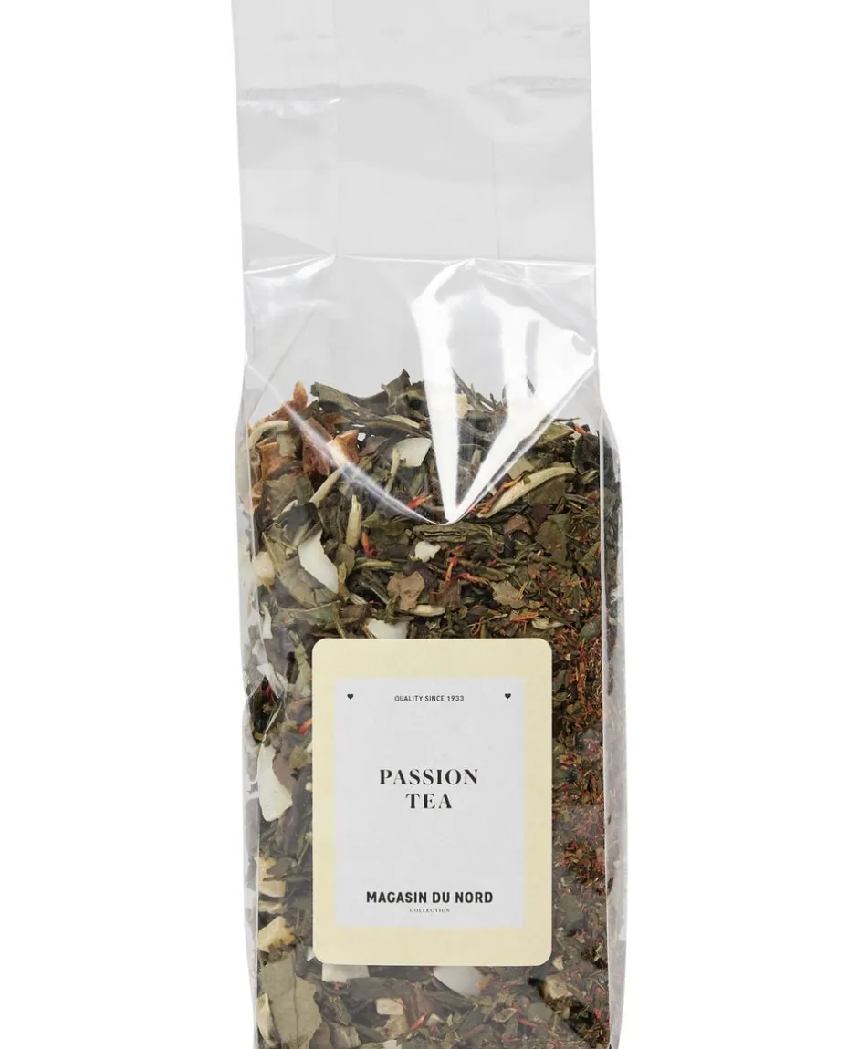 ‘Passion’ te fra Magasin du Nord Collection. Teen er en balanceret blanding af grøn og hvid te kombineret med citrus og passionsfrugt, som giver en sød og frisk smag. En skøn te, der kan nydes alene eller sammen med dem, du holder af.