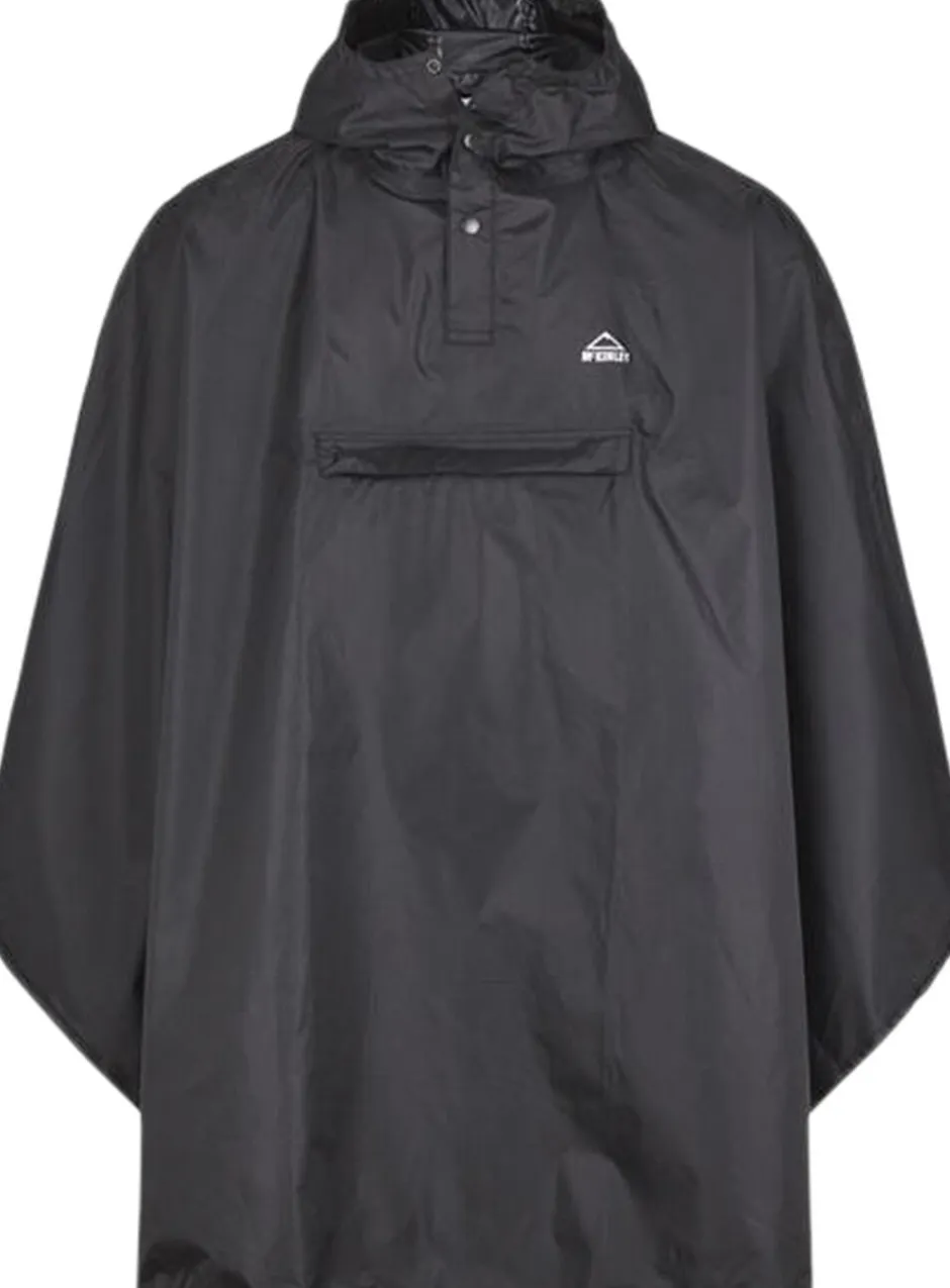 Mckinley Kim Rain Cape er et regnslag, der beskytter dig mod vind og vejr, med sit vandsøjletryk på 3. 000 mm, fuldt tapet sømme og vindtæthed. Regnslaget er med hætte, lille lynlås fra halsen og ned til brystet, med en lynlåslomme under, som kan bruges til opbevaring, eller til at pakke regnslaget ned i, så det ikke fylder i tasken.
