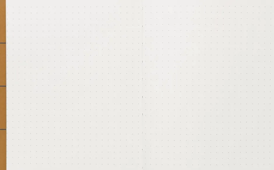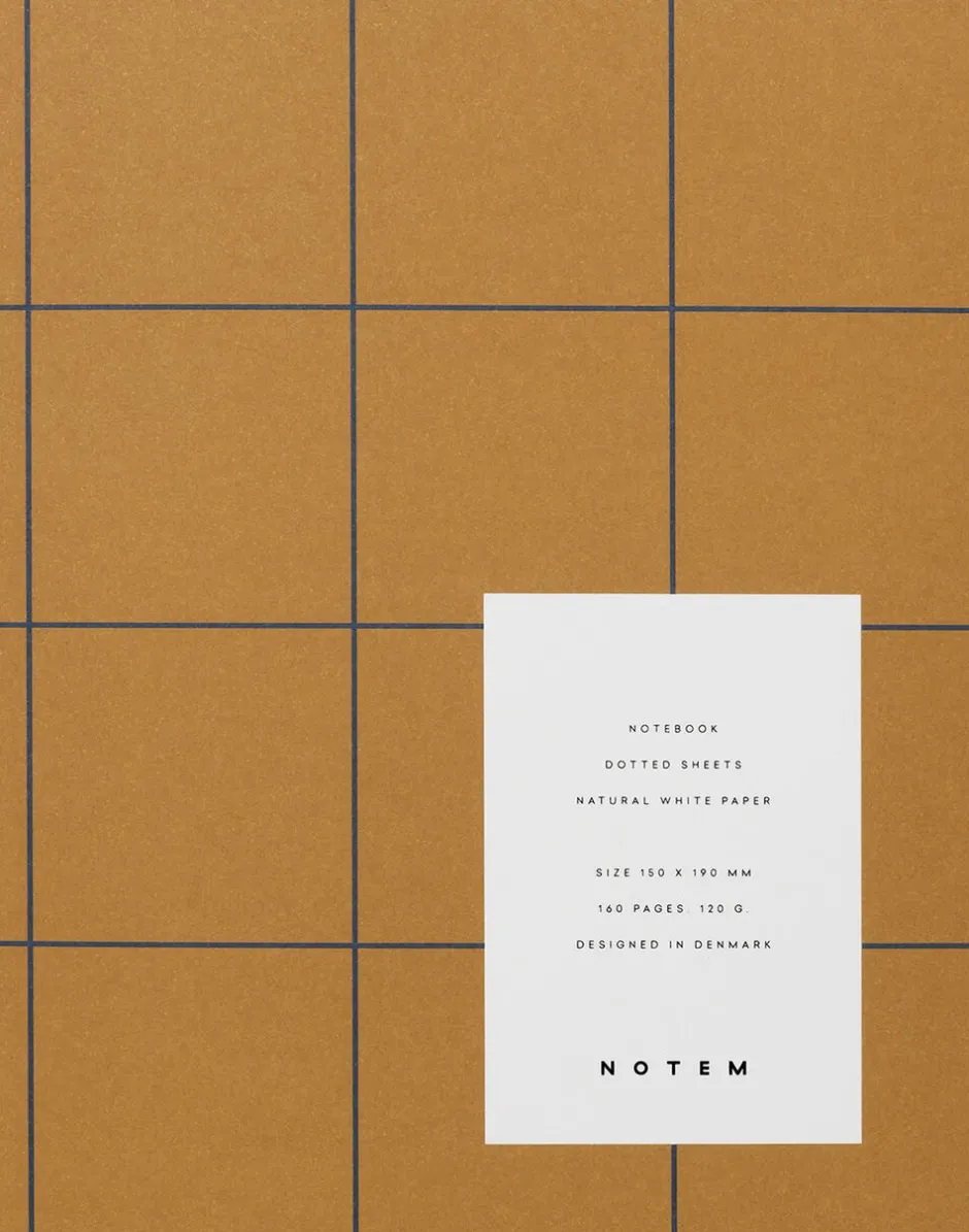 Softcover notesbog fra Notem Studio. Bogens ryg er syet og ikke fæstnet til coveret, hvilket giver en plan flade at skrive og tegne på. Indhold: 160 sider, Prikket gitter på alle sider. Farve: Okker. Mål: 150 x 190 mm. Designet i Danmark, produceret i Europa.