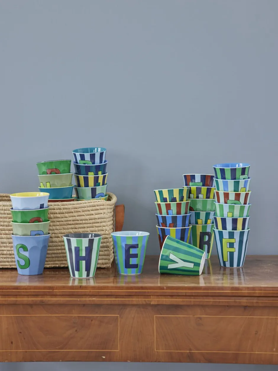 Den skønne melaminkop med bogstaver. Mix og match på kryds og tværs, og skriv lige det budskab, der falder dig ind med de forskellige kopper. Eller gør det enkelt for alle i familien at have deres helt egen personlige kop. Her er bogstavet Y. Koppen er en favorit, og det er der god grund til. Brug den til alt muligt – som drikkekrus, til skriveredskaber eller til lækre smoothies. Kun fantasien sætter grænser. Vær opmærksom på, at produkterne ikke er egnet til mikroovn.