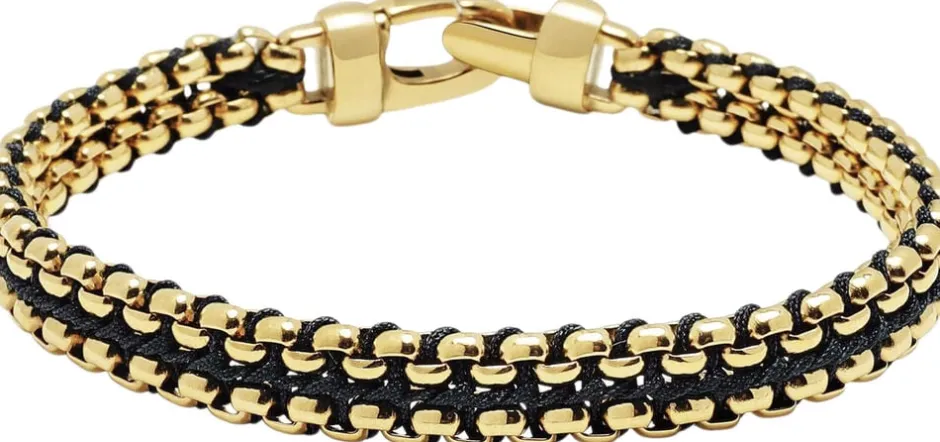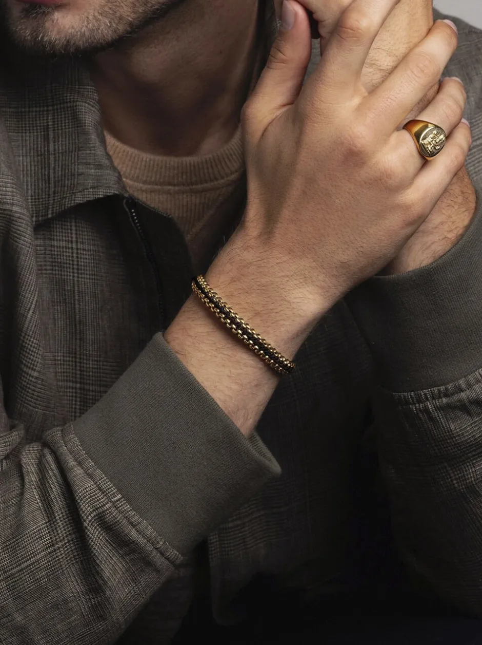 Men’s Black Woven 8mm Box Chain Bracelet in Gold-Nialaya