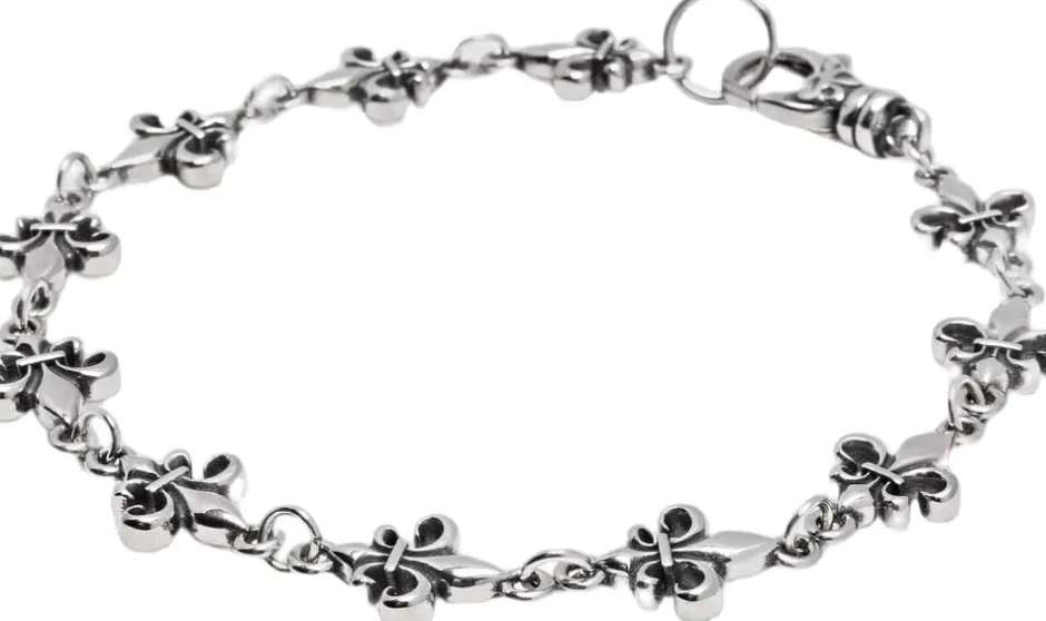Forbundet armbånd til Herre i rustfrit stål med hummerspænde, Fleur de Lis-størrelse: 8×10 mm. Håndlavet i Los Angeles