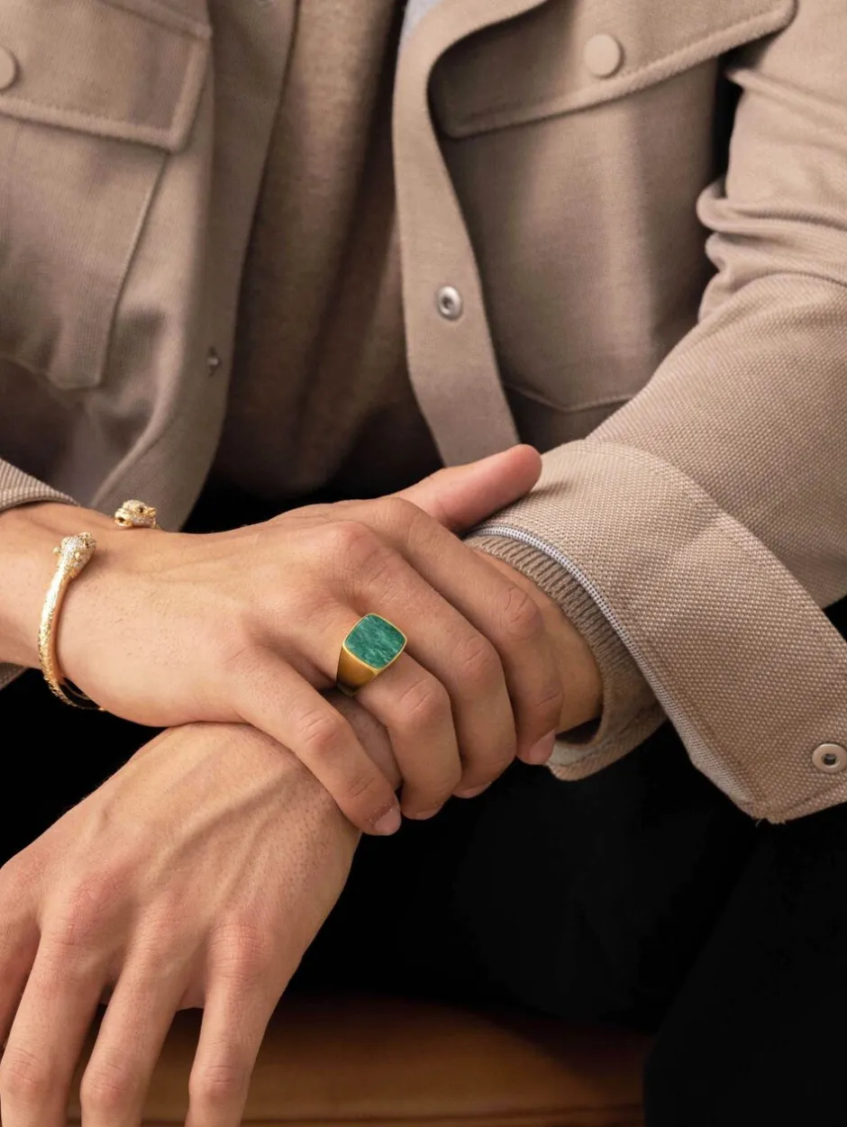 Ring i rustfrit stål til Herre med guldplade og grøn afrikansk turkis