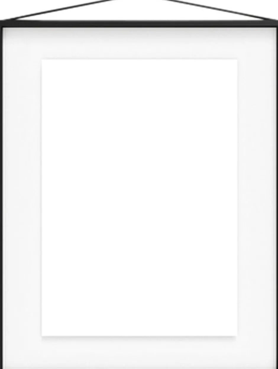 Frame consists of two pieces of acrylic glass, four lists, and a rubber band. The rubber band both holds the frame together and serves for hanging the frame on your wall. The simple but clever construction allows the frame to be hung in either direction or even to be viewed from both sides, giving your artworks or photographs the focus they deserve. Choose from ten different finishes and six different sizes (40×50 cm & 50×70 cm available only in oak & black).