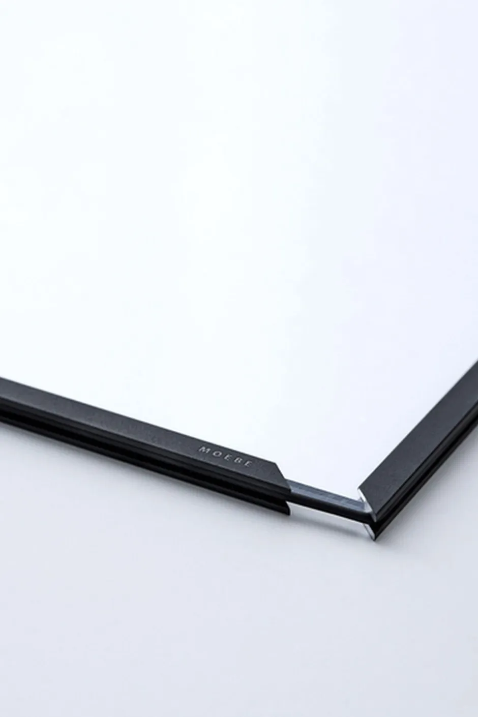 FRAME er holdt simpel, Reduceret til den mest enkle form og funktion og har fået tilført transparens. FRAME består af to stykker plexiglas, fire lister af pulverlakeret aluminium og en elastik. Elastikken holder både sammen på rammen og bruges som ophæng.