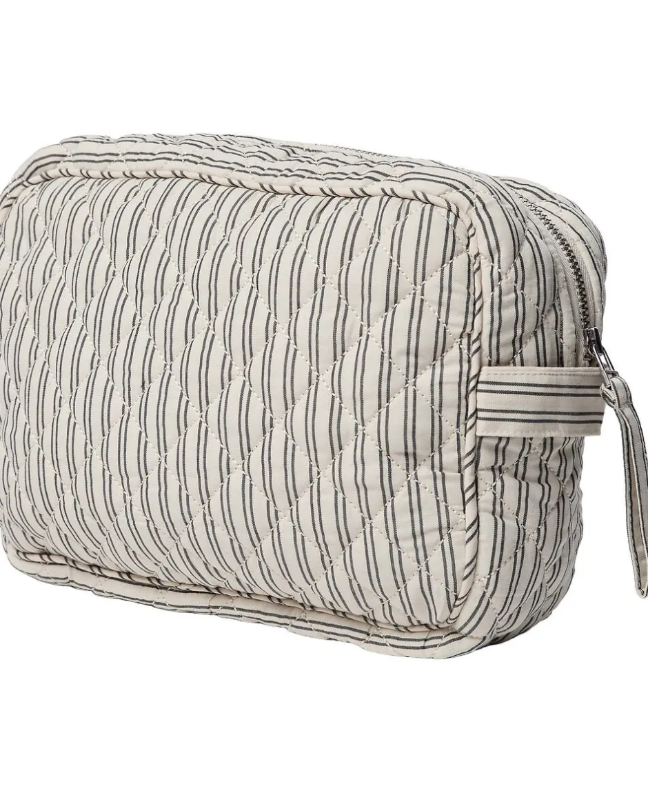 Toilettaske fra Magasin du Nord Collection i den blødeste kvalitet af 100% økologisk bomuld med GOTS-certificering. Toilettasken består af ét stort rum med lynlåslukning samt mindre inderlommer. Derudover har toilettasken et lille håndtag samt fine vatterede syningsdetaljer. En skøn toilettaske i den lækreste kvalitet.