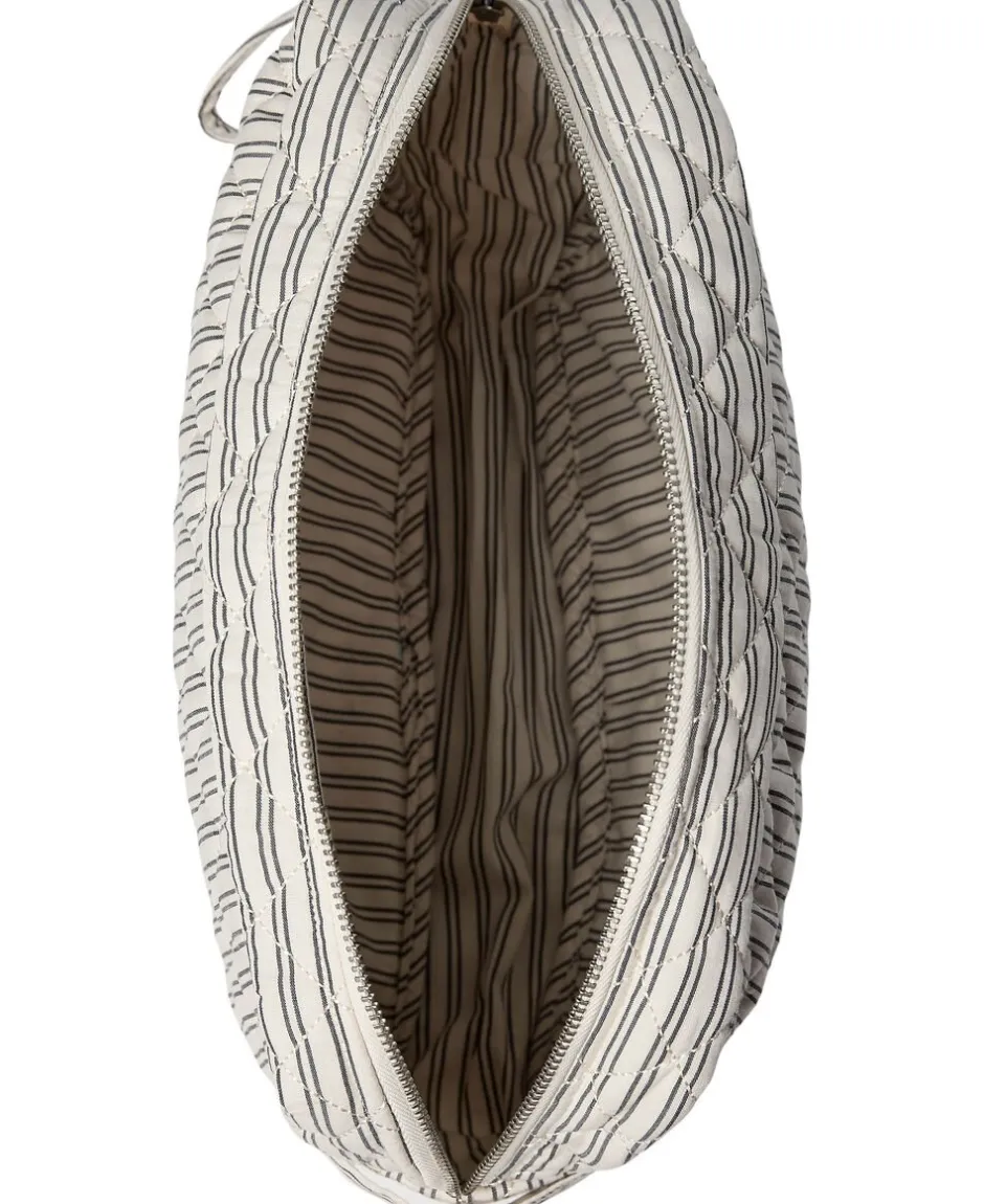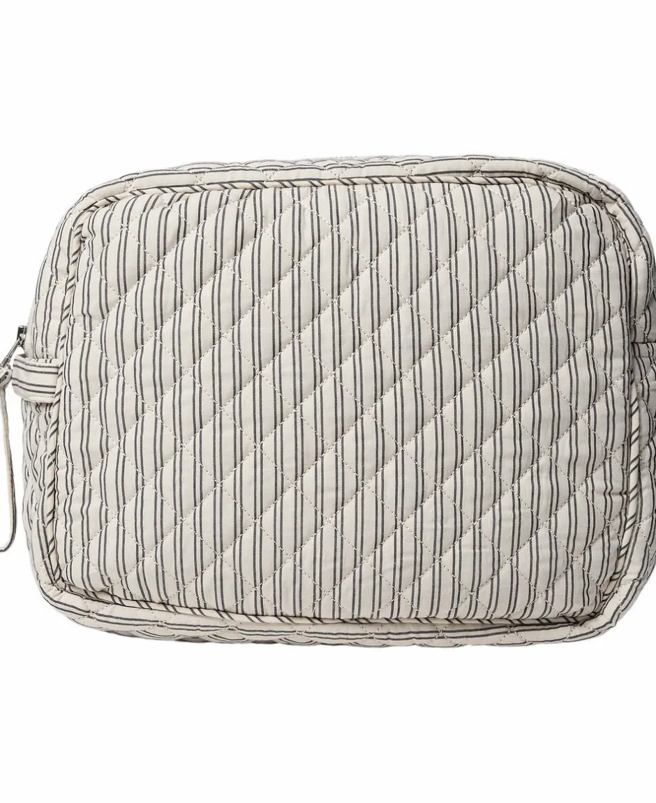 Toilettaske fra Magasin du Nord Collection i den blødeste kvalitet af 80% økologisk bomuld med GOTS-certificering. Toilettasken består af ét stort rum med lynlåslukning samt mindre inderlommer. Derudover har toilettasken fine vatterede syningsdetaljer og et stribet print. En skøn toilettaske i den lækreste kvalitet.