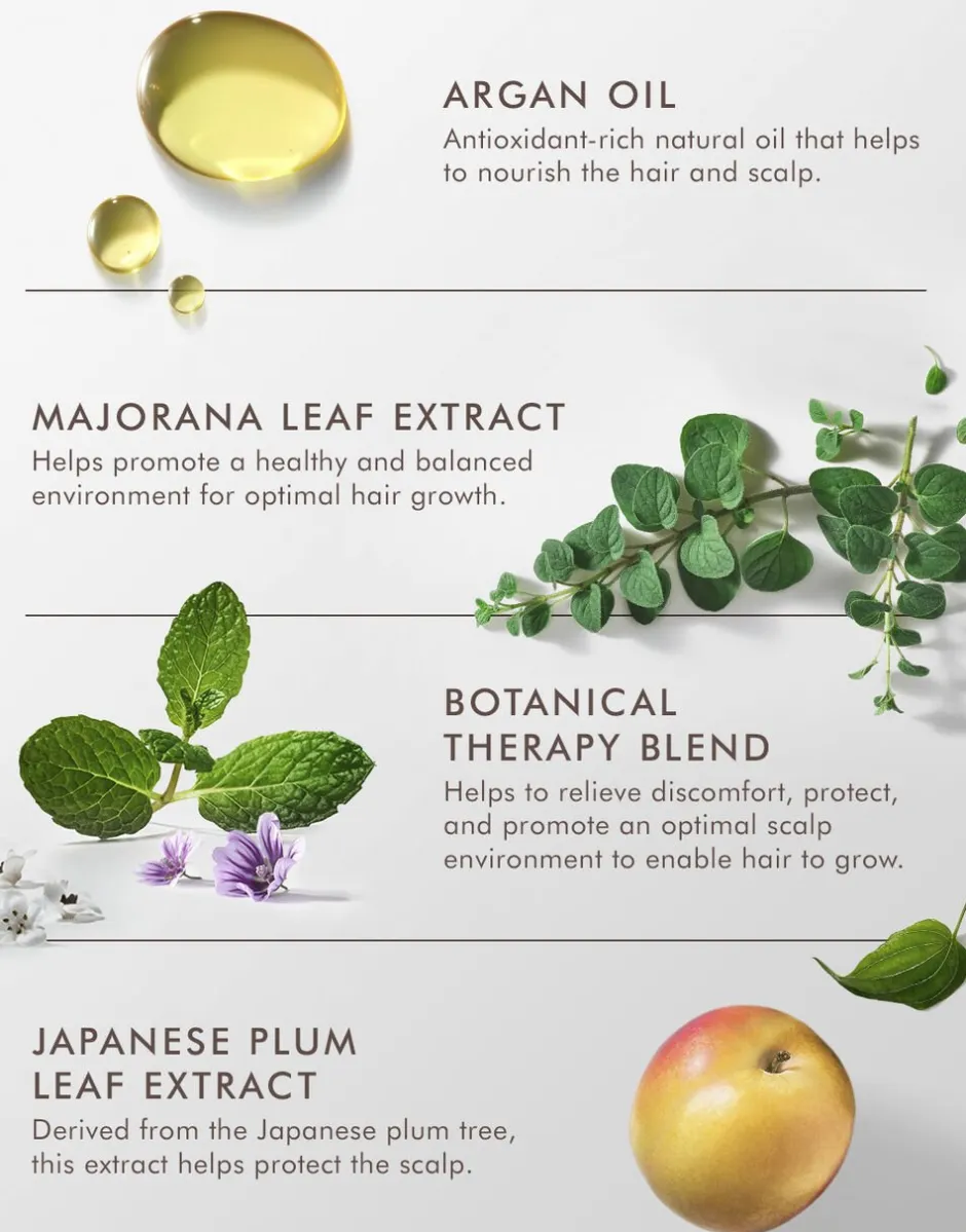 -Sød merianekstrakt har beroligende egenskaber og hjælper med at fremme en afbalanceret hovedbund for en optimal hårvækst.