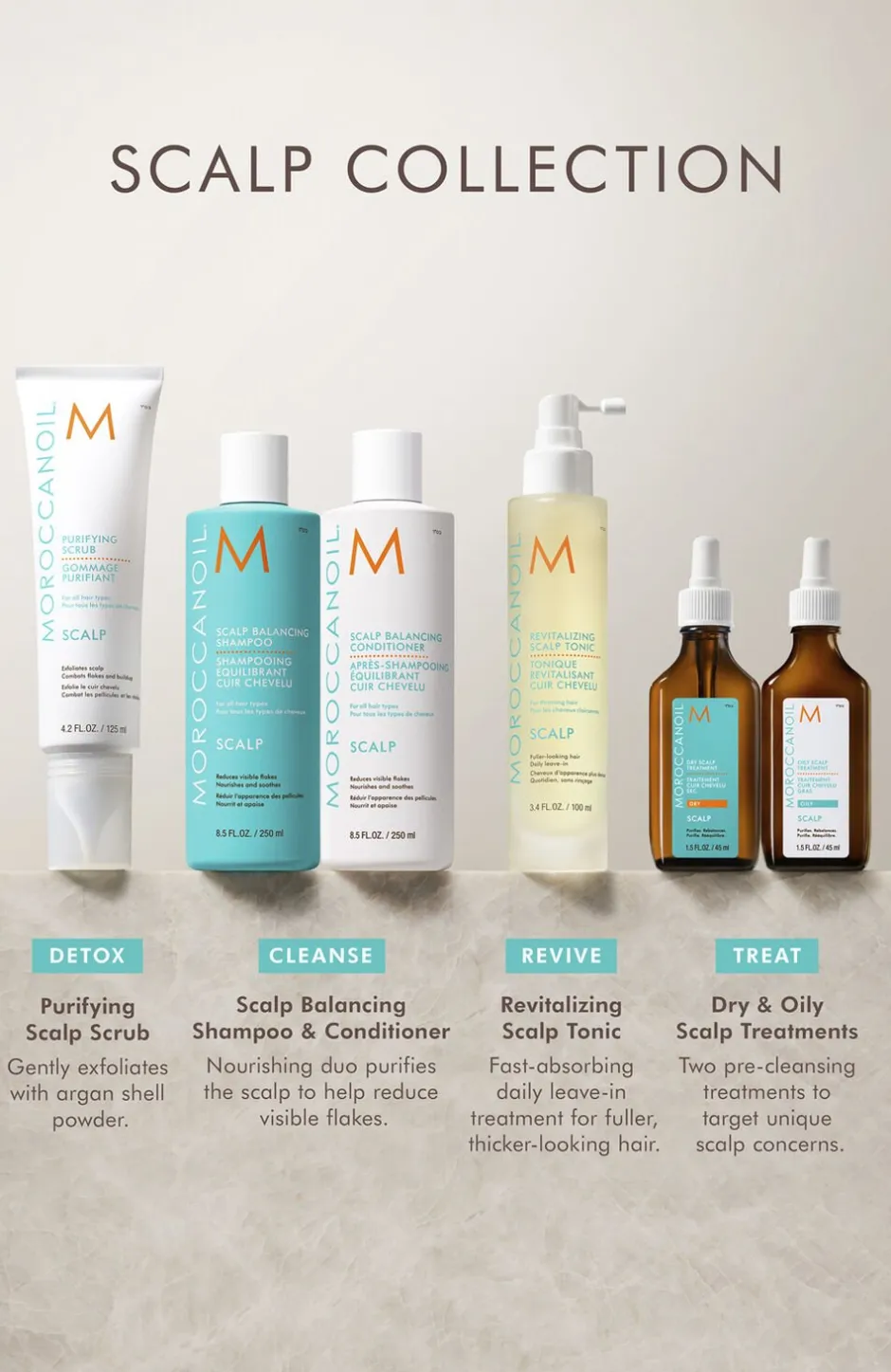 For optimal pleje af hovedbunden og sikring af et sundt hovedbundsmiljø, anvend da Moroccanoil Scalp Balancing shampoo og conditioner inden påføring af Moroccanoil Revitalizing Scalp Tonic.