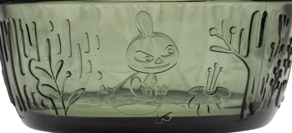 Udforsk den fantastiske, prægede glaskollektion inspireret af Tove Janssons roman Finn Family Moomintroll. Hvert stykke er dekoreret med smukke teksturer, der fanger magien i den mystiske skov, mens moominerne leger skjul og søger. Moomin Arabia, skål fyrregrøn, 35 cl