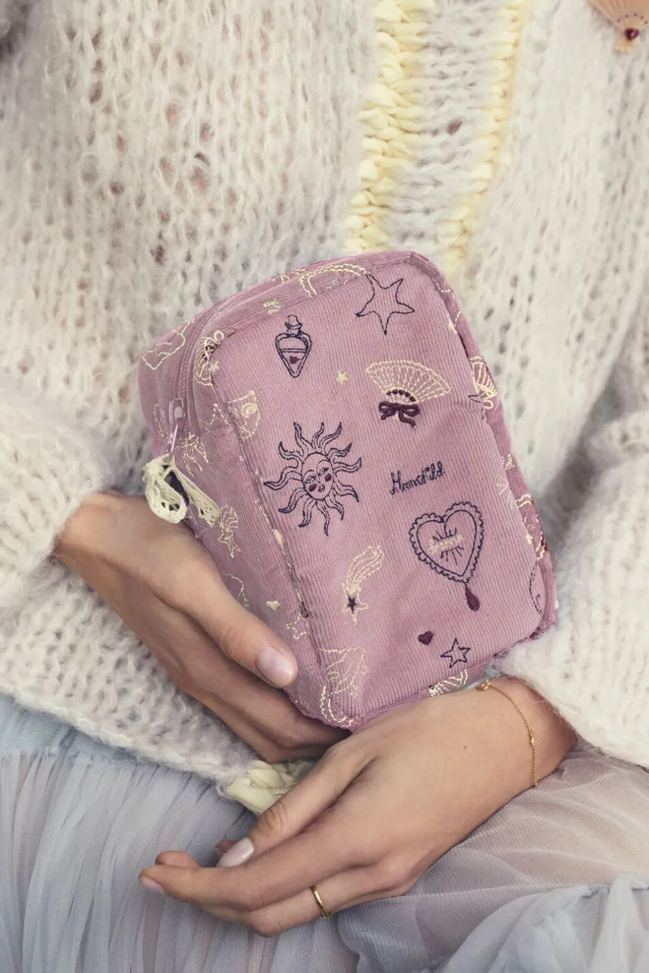 Tilføj et strejf af teatermagi til din makeuprutine med vores Dreams Makeup Taske, som er pyntet med stjerner, hjerter og altseende øje