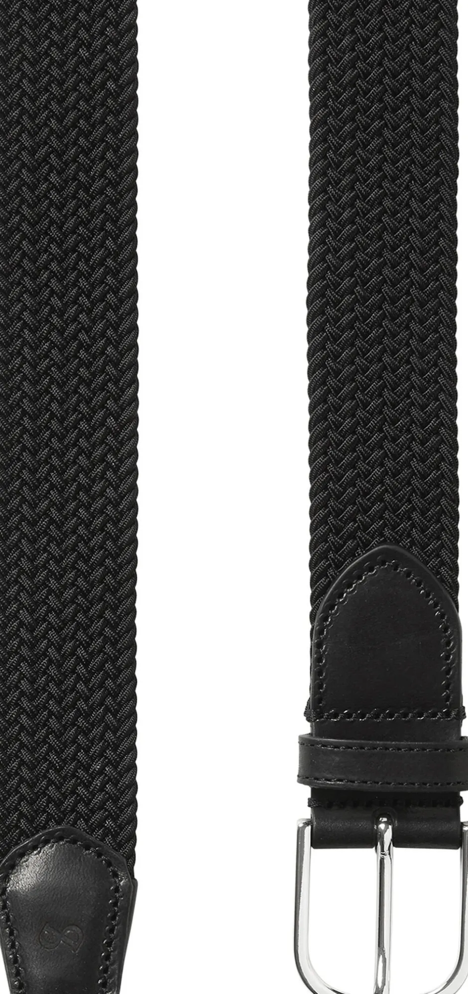 Elastisk fletbælte fra SADDLER. 35mm bredt med eksklusivt blankt spænde. Bæredygtigt produceret i Italien. Egner sig til både jeans og casual brug. Den høje kvalitet på elastikken i bæltet sikrer en lang levetid. Bæltelængden er målt fra bæltespændet til 15 cm fra spidsen af bæltet.