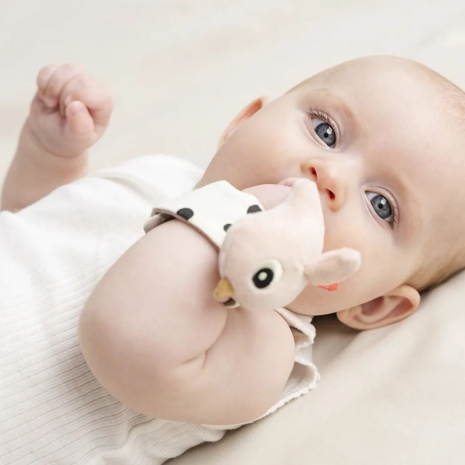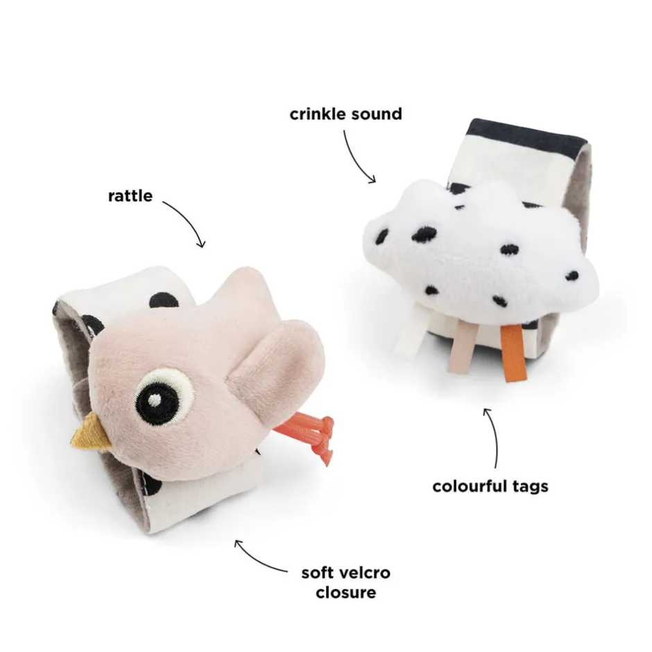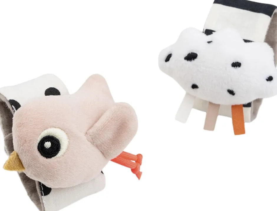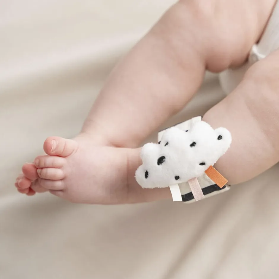 Happy clouds håndledsrangler består af 2 bløde babyarmbånd med pudderfarvede detaljer