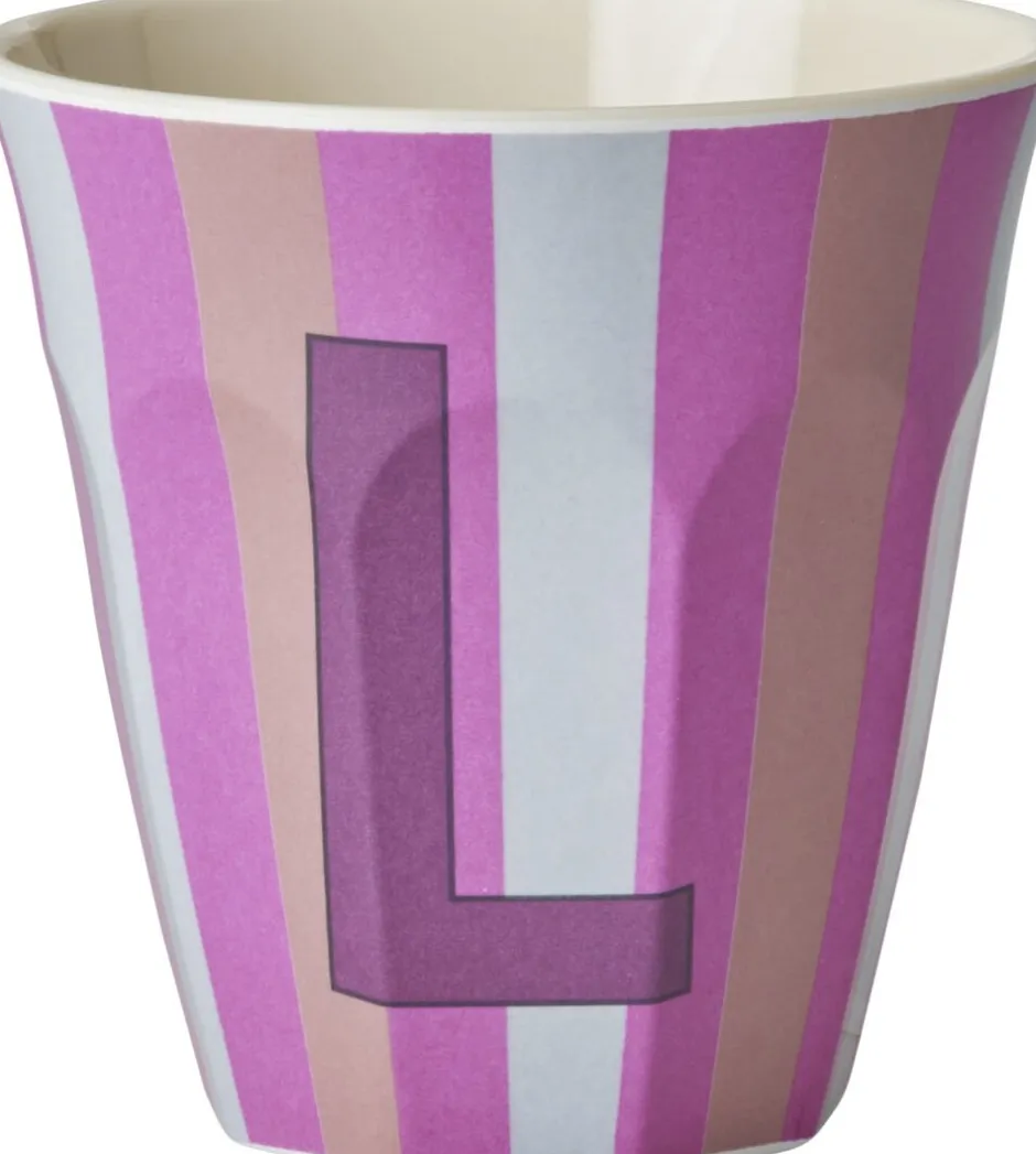 Den skønne melaminkop med bogstaver. Mix og match på kryds og tværs, og skriv lige det budskab, der falder dig ind med de forskellige kopper. Eller gør det enkelt for alle i familien at have deres helt egen personlige kop. Her er bogstavet L. Koppen er en favorit, og det er der god grund til. Brug den til alt muligt – som drikkekrus, til skriveredskaber eller til lækre smoothies. Kun fantasien sætter grænser. Vær opmærksom på, at produkterne ikke er egnet til mikroovn.